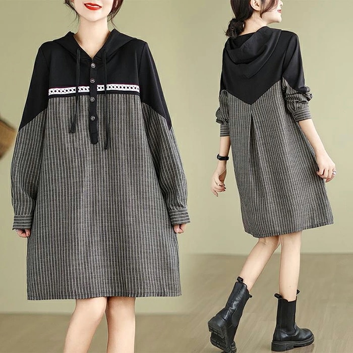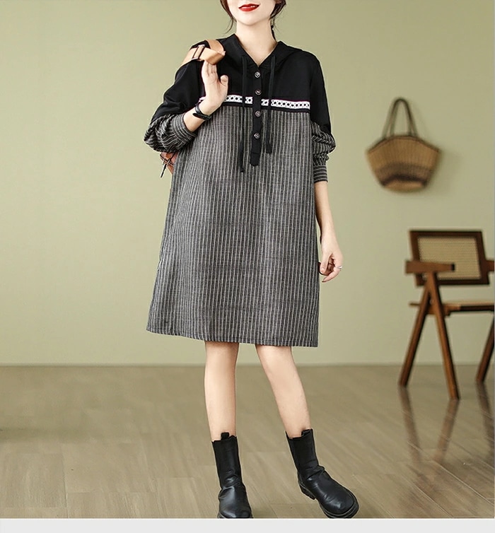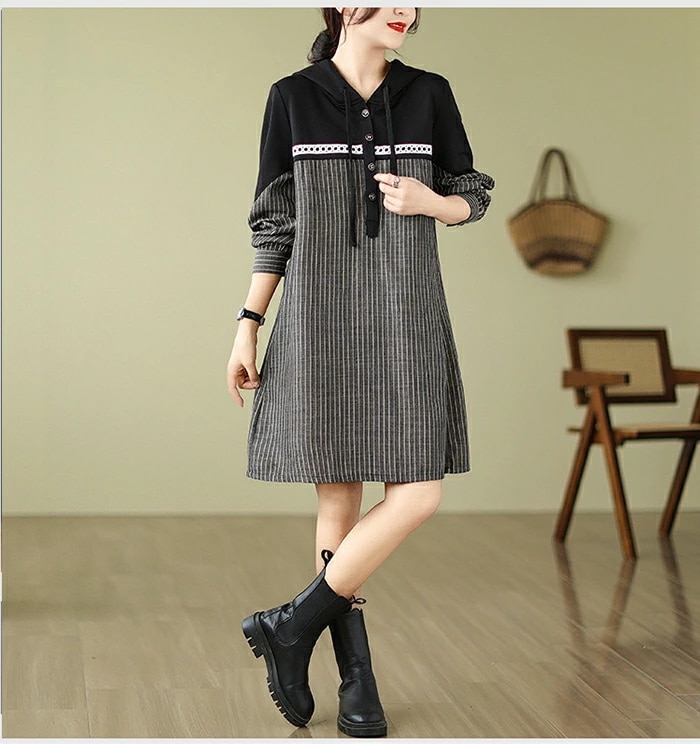 チュニック ワンピース レディース 長袖 ストライプ柄 切替 チュニックワンピース 大きいサイズ トップス プルオーバー 大人可愛い ゆったり 膝丈 体型カバー 森ガール ワンピ レトロ 春 秋 冬