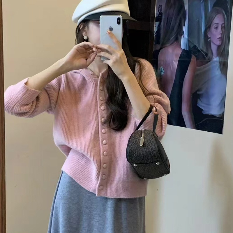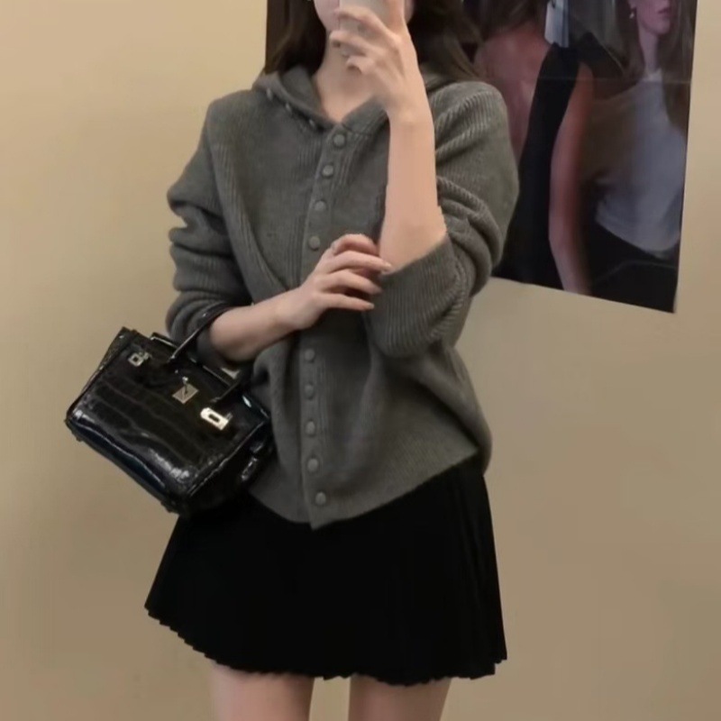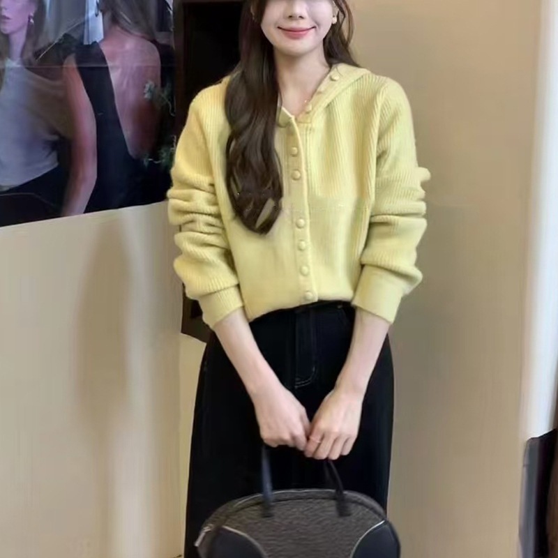 韓国系純色シングルブレスト連帽ニットカーディガン女性2024秋冬新作キャンディカラーニットコートトップス ニット
