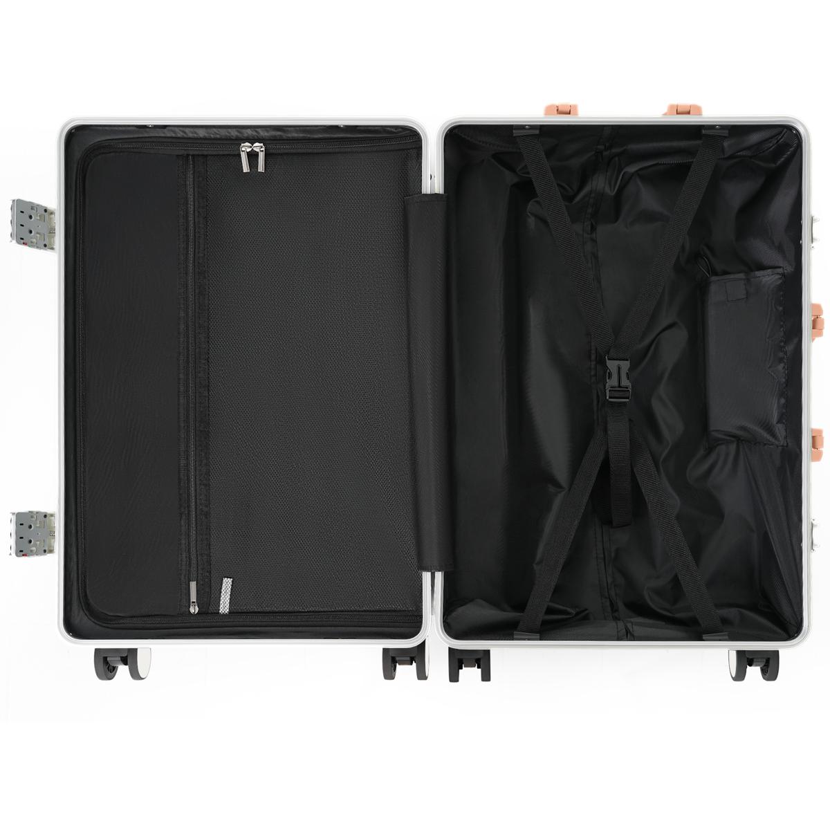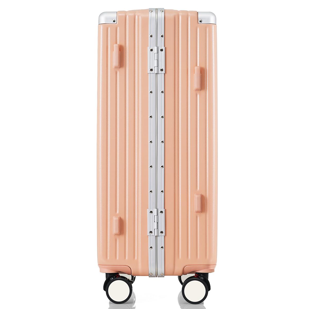 スーツケース Lサイズ フレームタイプ アルミ USBポート付き カップホルダー フック式底足 ストッパー付き キャリーケース キャリーバッグ 軽量 おしゃれ 静音 海外 高級感 TSAロック 大型 8~14日 China Pink