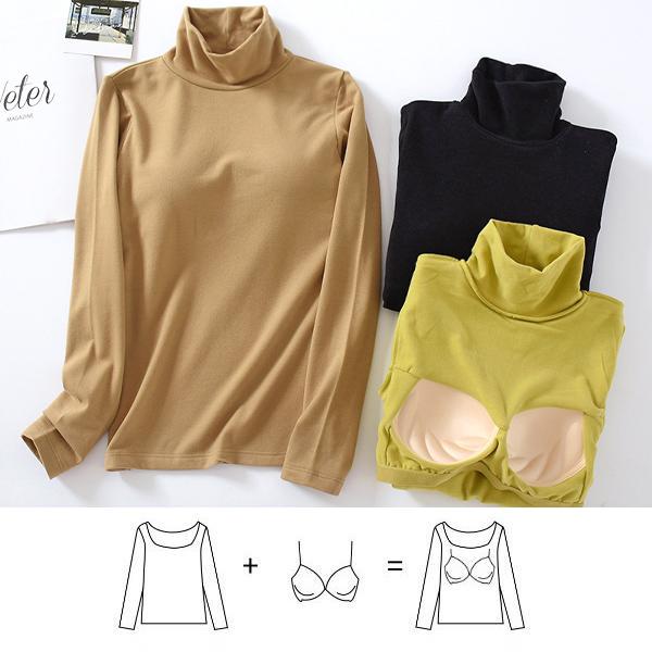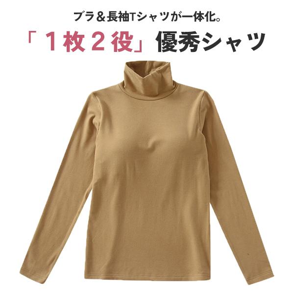 カップ付き Tシャツ 長袖 インナー ブラトップ 暖か 裏起毛 レディース ノンワイヤー タートルネック ハイネック ルームウェア 部屋着 トップス