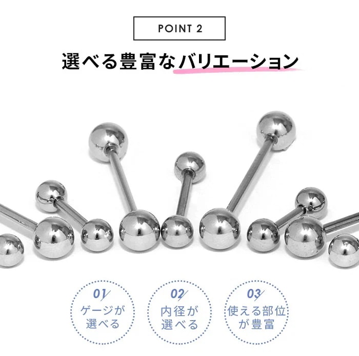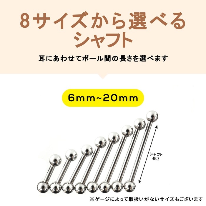 ボディピアス 16G 14G 軟骨ピアス 舌ピアス 片耳用 内径 6mm 8mm 10mm ピアス