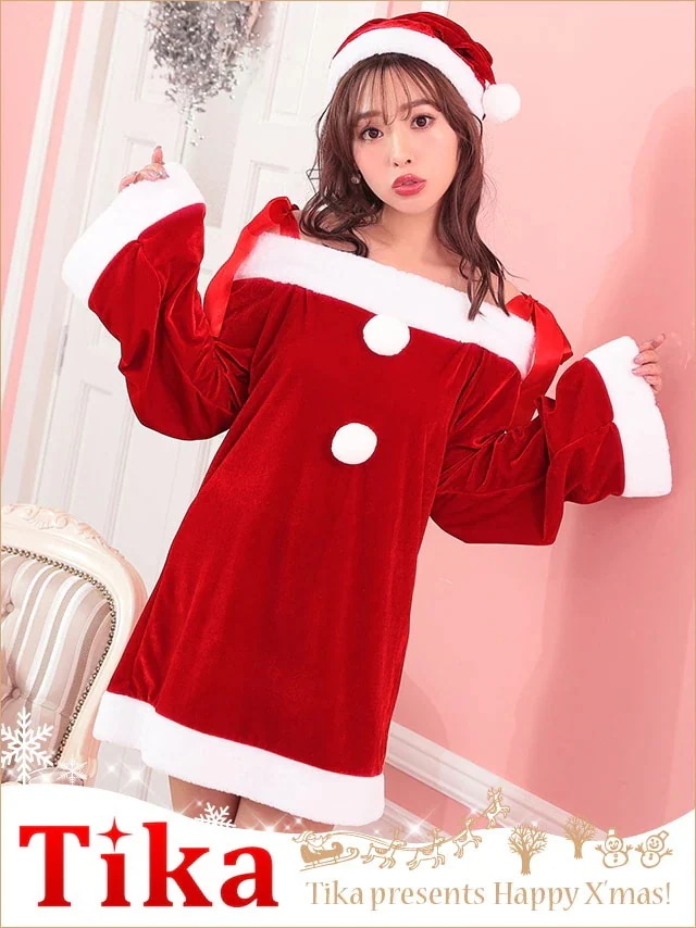 秋冬 新年ファッション クリスマスコフレ サンタ オフショル 長袖 黒 かわいい エロ キャバドレス キャバ嬢 サン サンタコス 仮装 コスプレ レディース