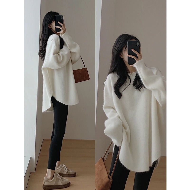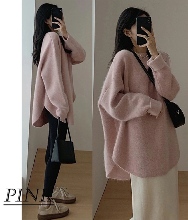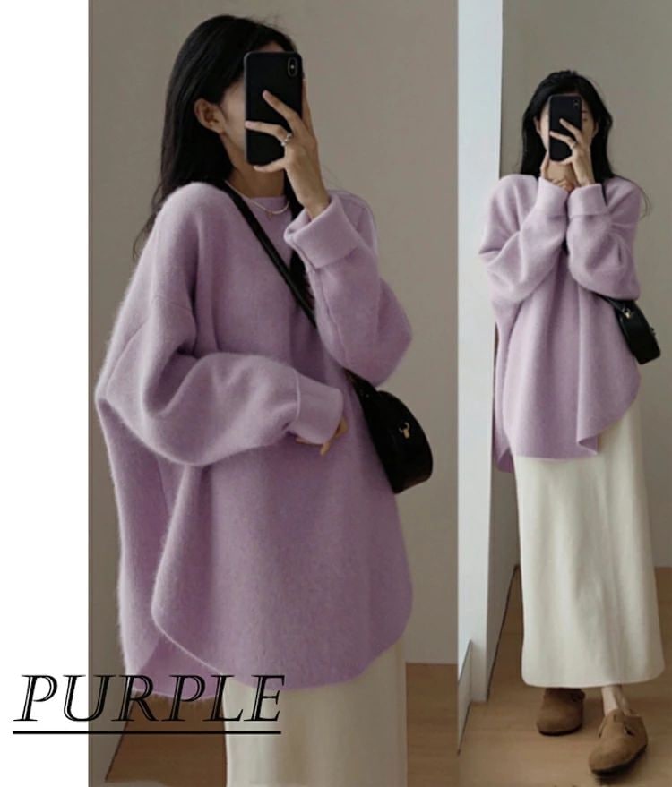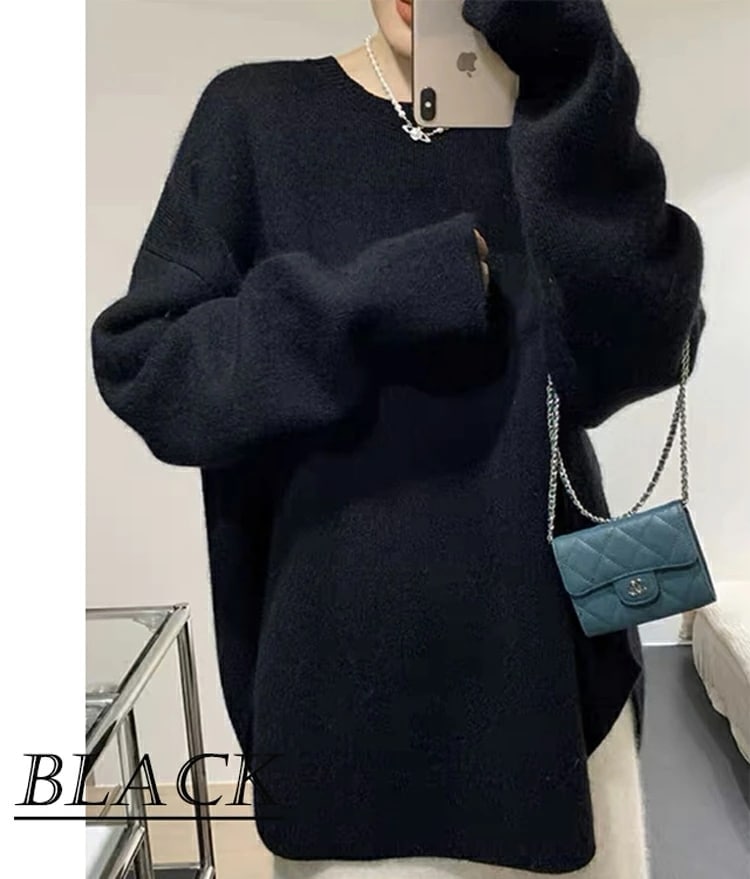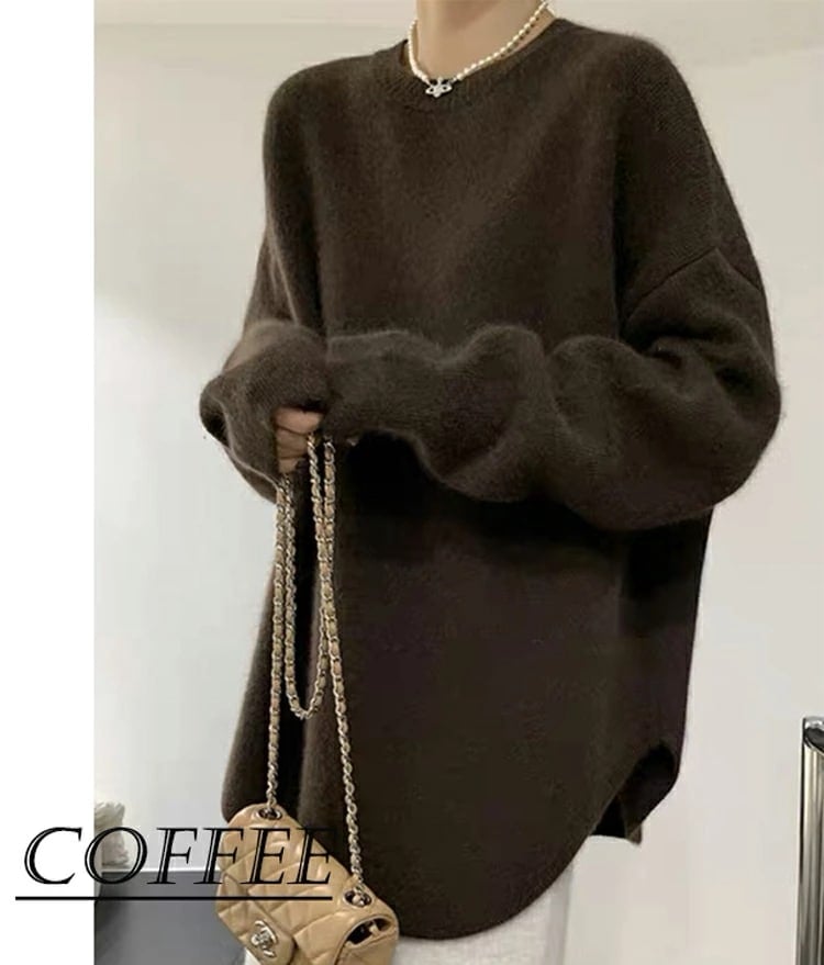 新品入荷 ニット セーター レディース 微起毛 秋冬 長袖 暖かい ラウンドヘム ラウンドネック モヘア シャギー オーバーサイズ ゆったり トップス チュニック丈 ドロップショルダー こなれ感