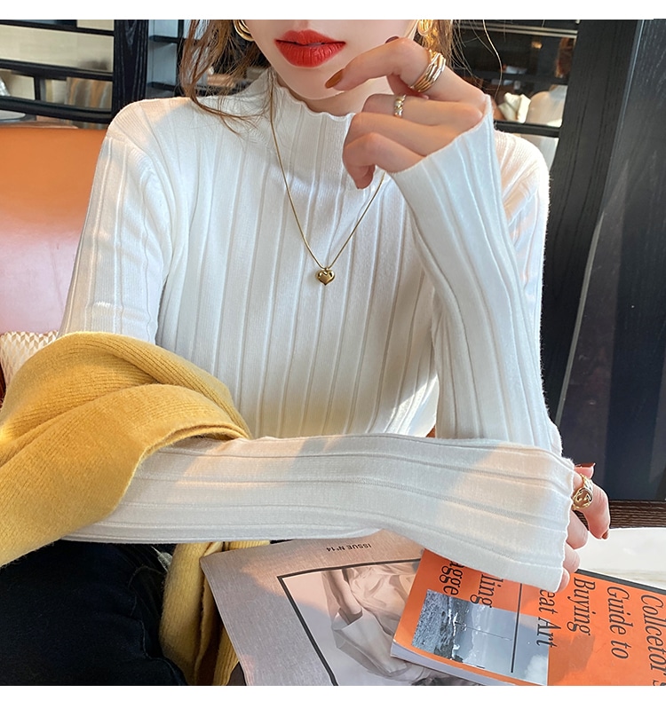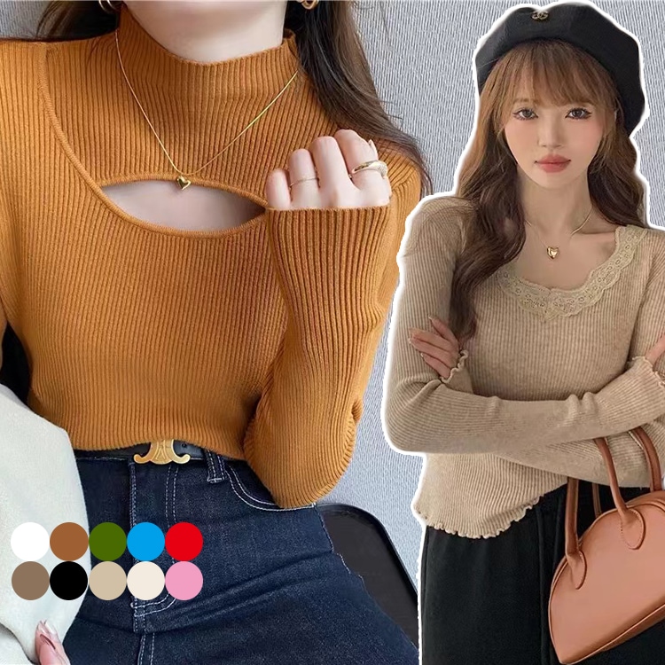 4タイプ選べデザインニット トップスレディースファッションハーフタートルネックベースの長袖ニセーター 春秋冬 ニット