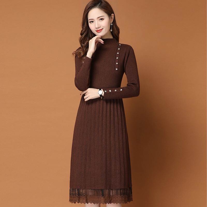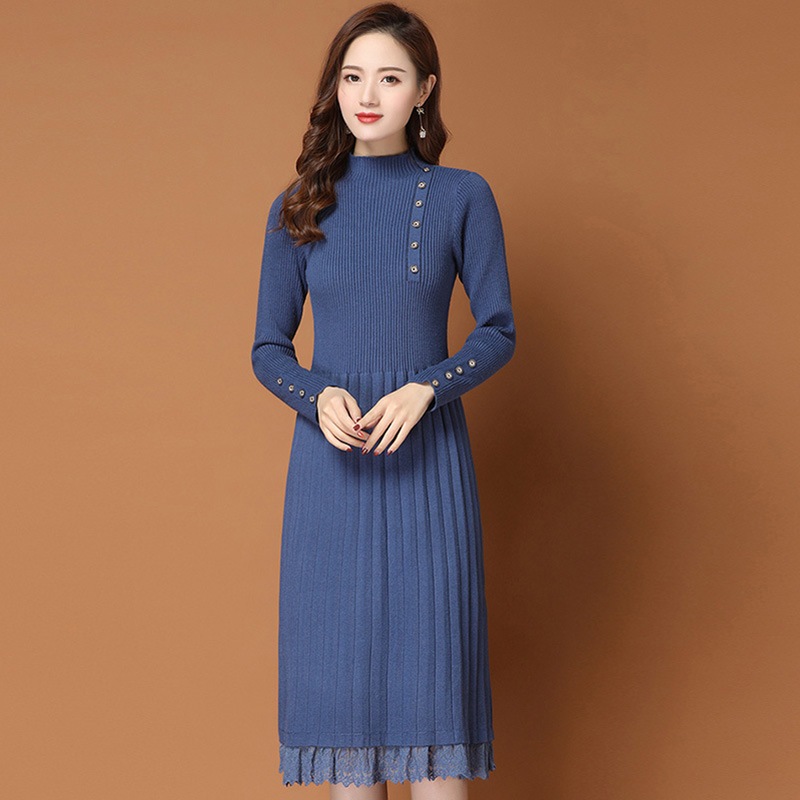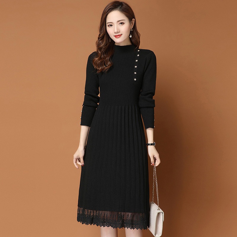 韓国ファッション シンプル ニット 切り替え ワンピース ロングワンピース 大きめサイズ ワンピース ワンピース 秋冬 長袖 Tシャツワンピース