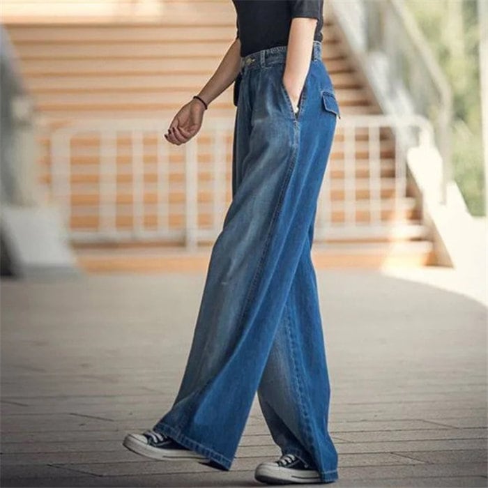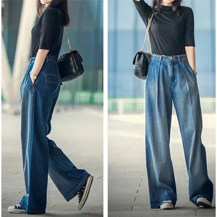 デニムワイドパンツデニムワイドパンツレディースジーンズデニムパンツロングパンツボトムスハイウエスト体型カバー大人カジュアル可愛い シンプル