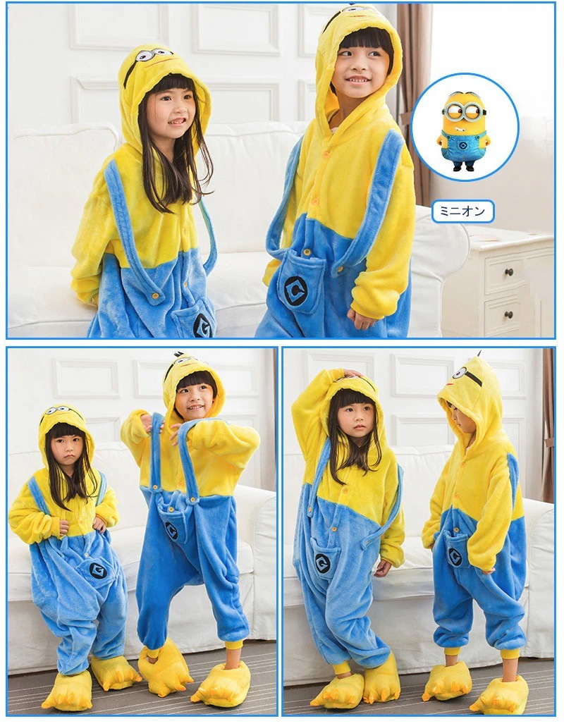 最安値挑戦 ミニオン 可愛い パジャマ ルームウェア ホームウェア ワンピース コスチューム コスプレ 出演服 フランネル キッズファッション 大人 子供 家族お揃い 限定特価ミニオン ハロウ