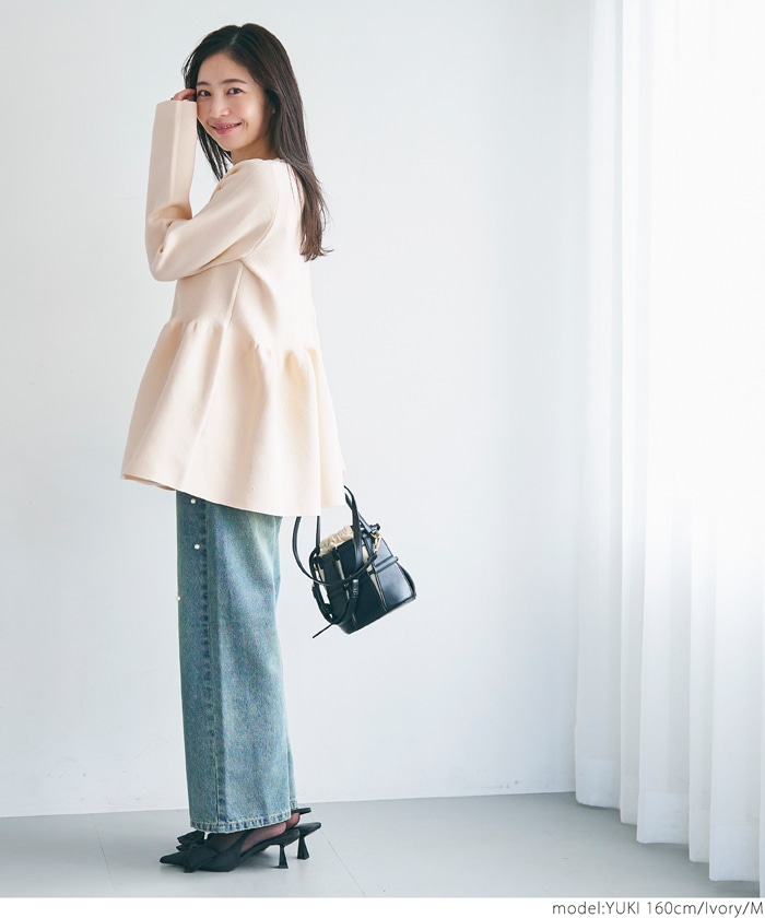 デニムパンツ ビジュー付き