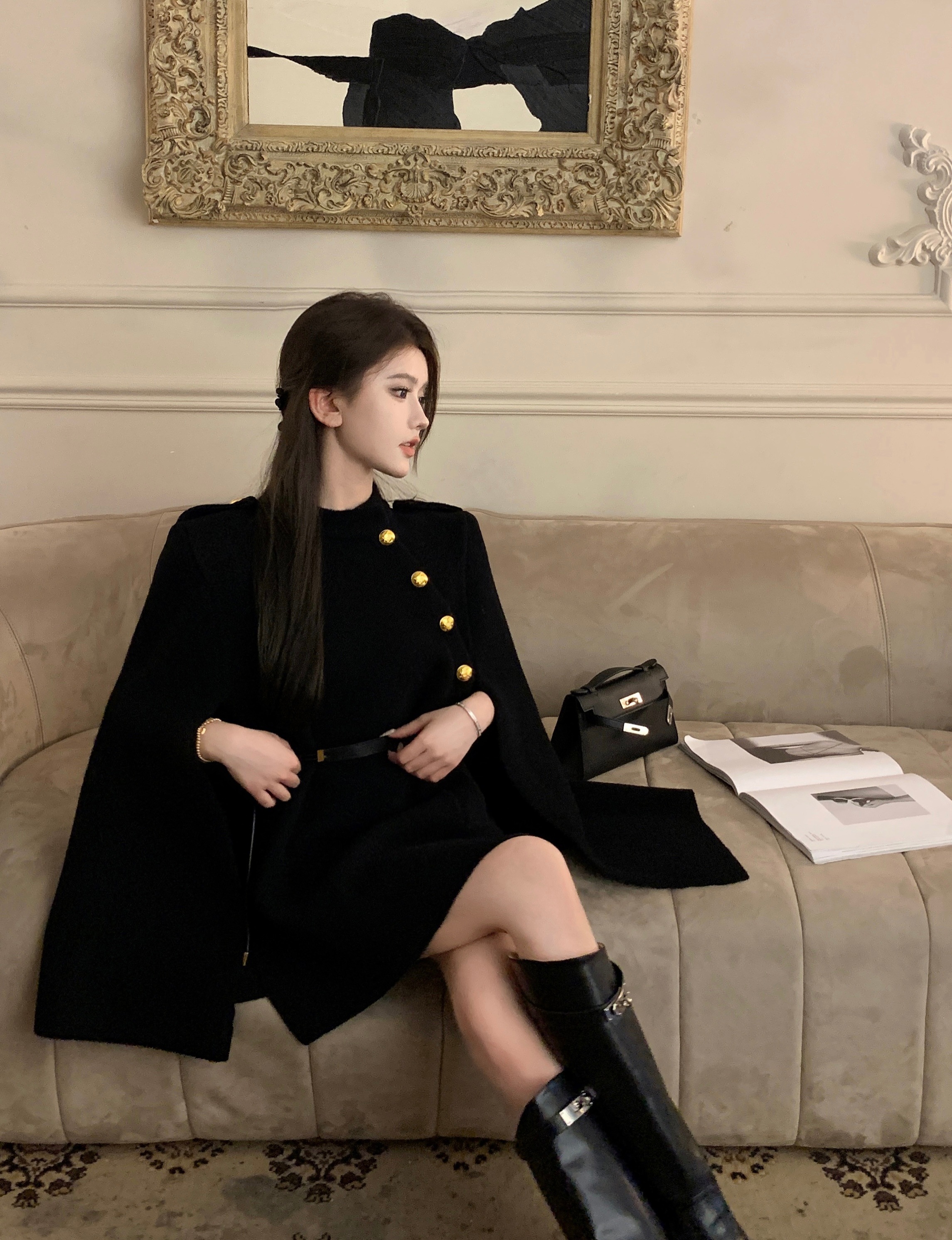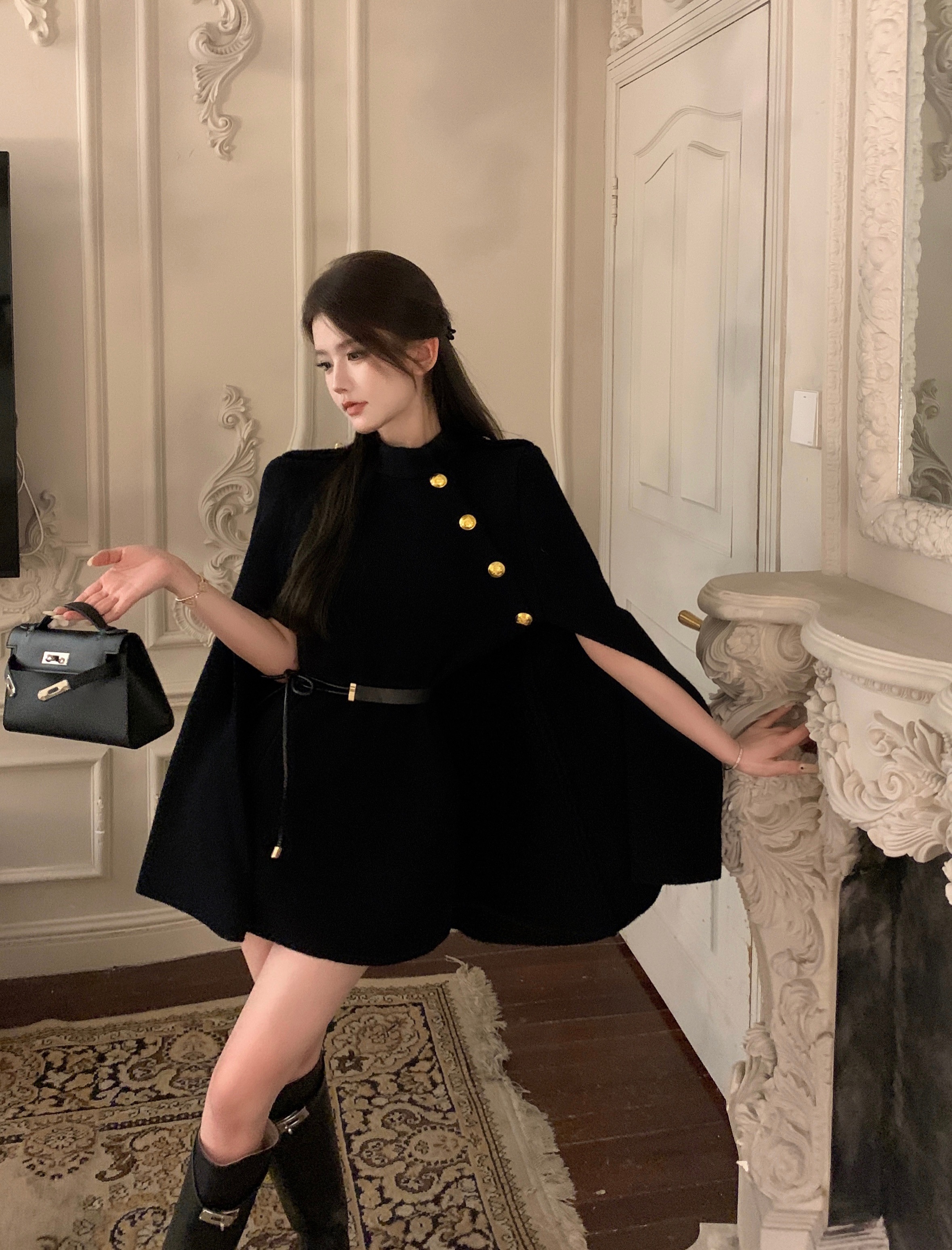 韓国黒モッズコートレディース秋コート小柄で高級感があるおしゃれマント今年は2023トップスがトレンド トレンチコート