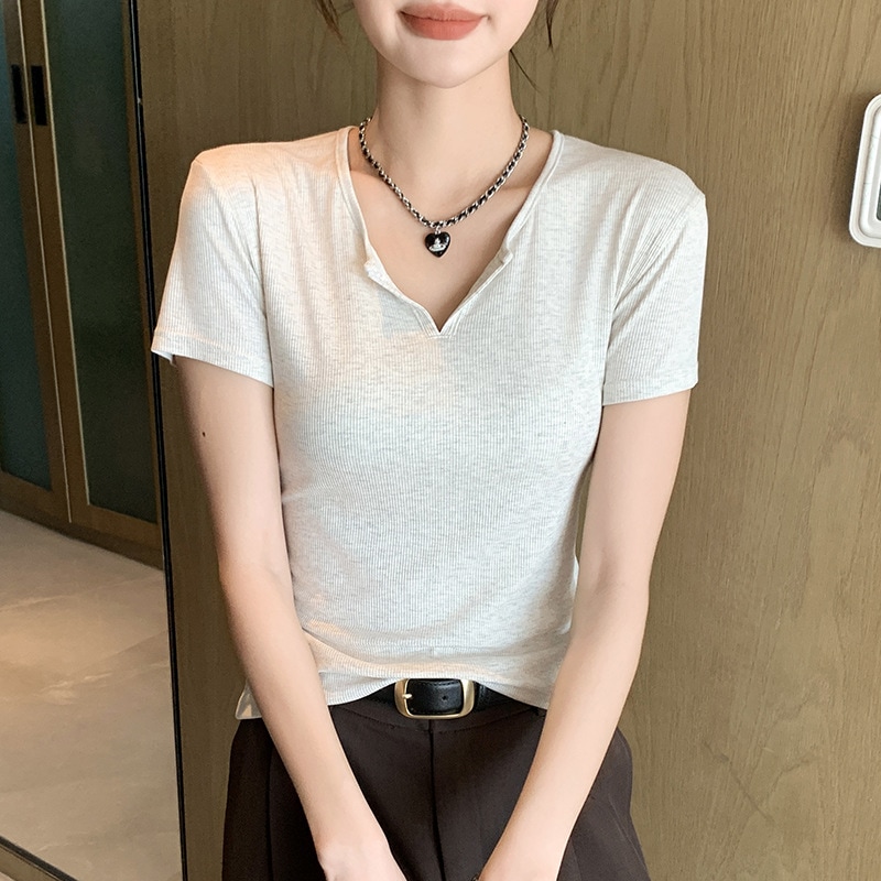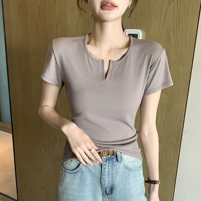 2024新作韓国ファッションサマーニットTシャツ 8カラー夏ニット レディース 無地 ニット プルオーバー リブニット トップス