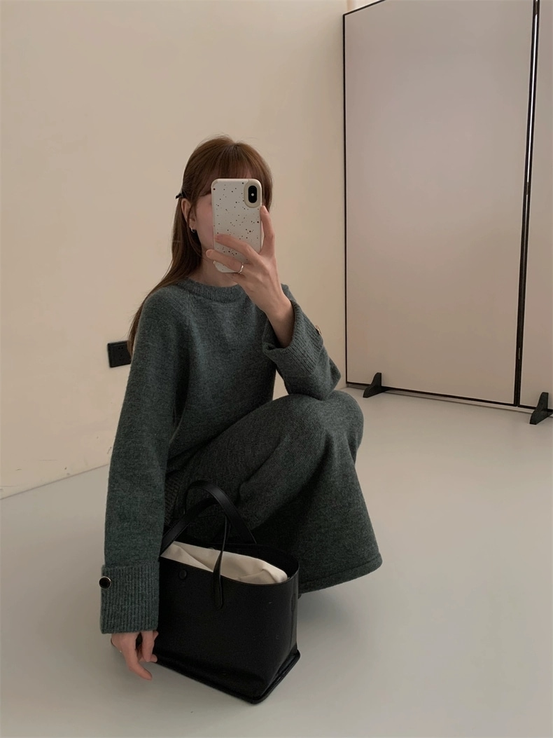 FREE1色韓国デザイン長袖秋冬厚手版スーツスプライスバイクスーツジャケットハイウエストスカート2ピースセット新型 セットアップ