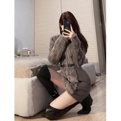上品甘ギャル厚手保温モコモコニットワンピースフィットバッグヒップショートスカートの新作婦人服 ニットワンピ