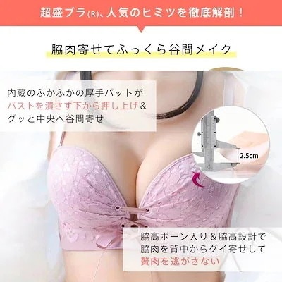 ずれにくい盛れるブラ 脇肉補正ブラ ストラップレス 美胸 ブラジャー ノンワイヤー脇高激盛ブラ 下着 ブラジャー