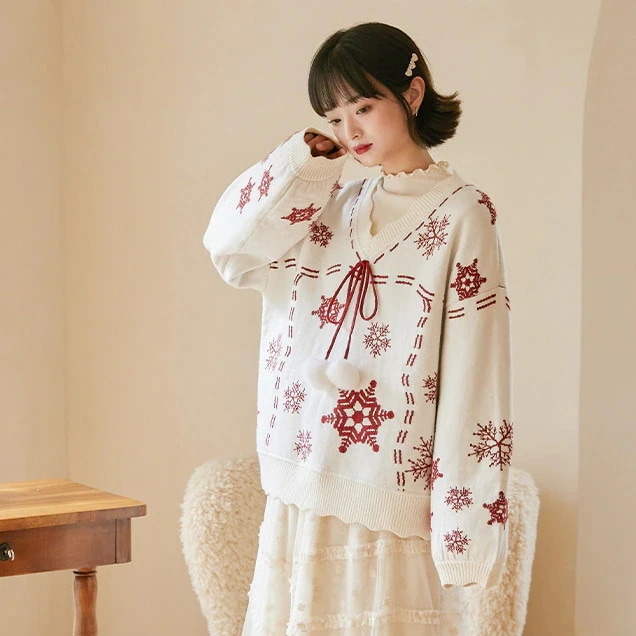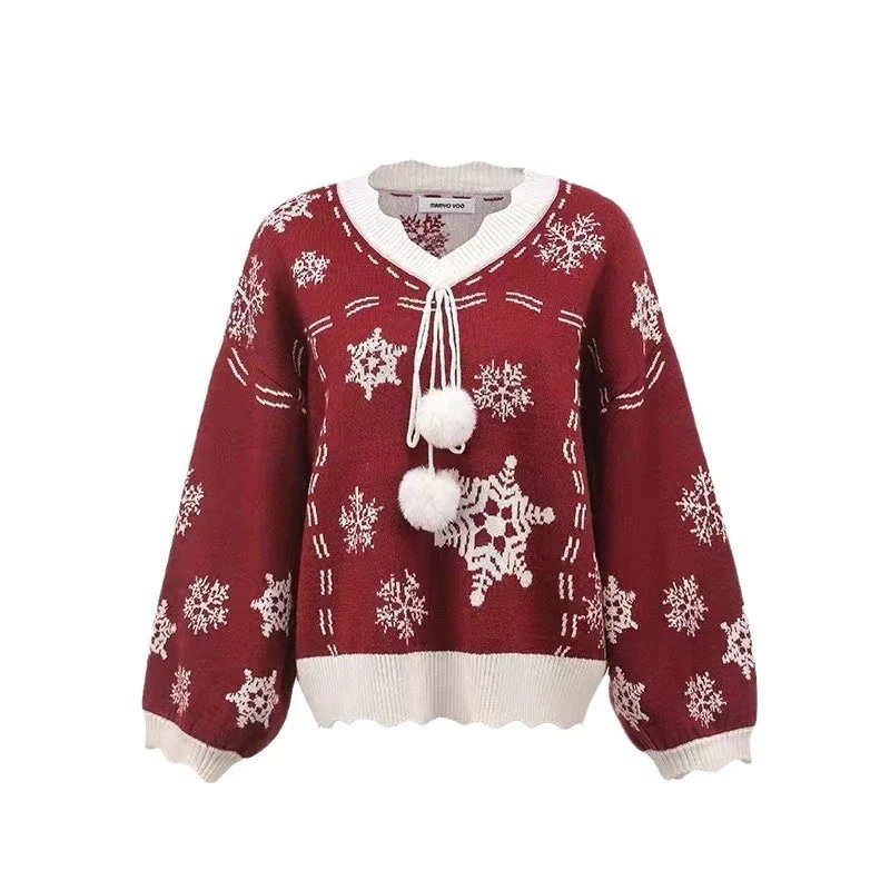 人气新作クリスマスジャンパー赤大晦日ニットセータープルオーバー雪の結晶ジャカード緩い汎用性の高い甘いトップス秋冬モデル外 サンタコス