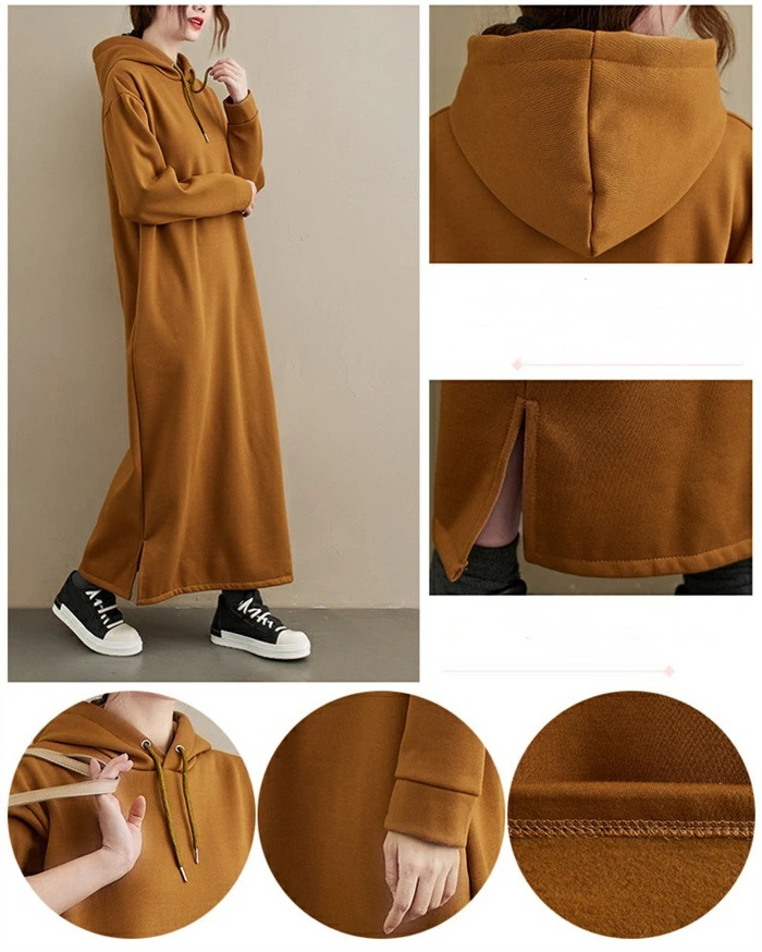 裏起毛 ワンピース レディース 秋冬 スウェット パーカー パーカーワンピース あったか 秋 冬 ロングパーカー スウェットワンピース ロング丈 ミモレ丈 長袖 フード付き トレーナー スリット 厚手