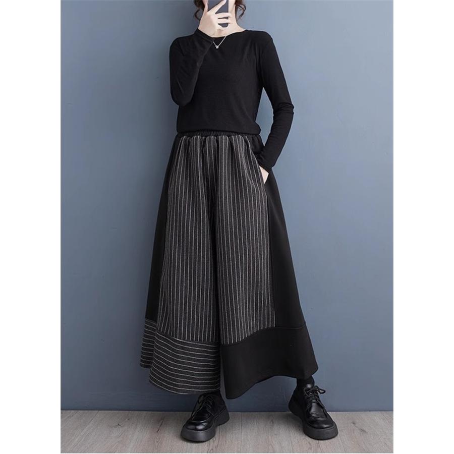 ワイドパンツ レディース 春新作 切り替え ボトムス サラッと着用するだけで抜け感のある ガウチョパンツ ウエストゴム ゆるっとした オーバーサイズ