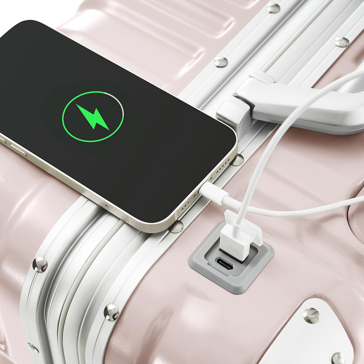 スーツケース Sサイズ 機内持ち込み アルミ ストッパー付き USBポート カップホルダー キャリーケース キャリーバッグ アルミフレーム 2日~3日 大容量 超軽量 軽い おしゃれ かわいいダブルキャスター小型 suitcase China Pink