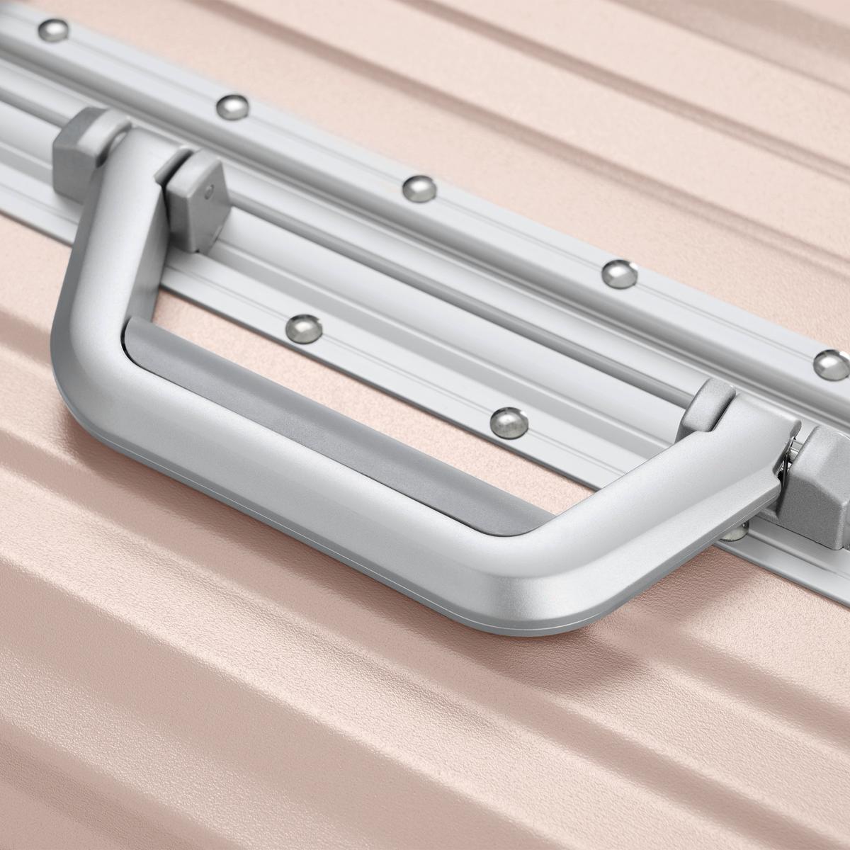 POINT 7.【アルミ製で、多段階調整可能ハンドル】 両方とも縦の凹溝設計を採用しており、箱体に上下の力学に支えられ、衝撃的なストレスを大幅に減らし、ハンドルの断絶を防ぐ。