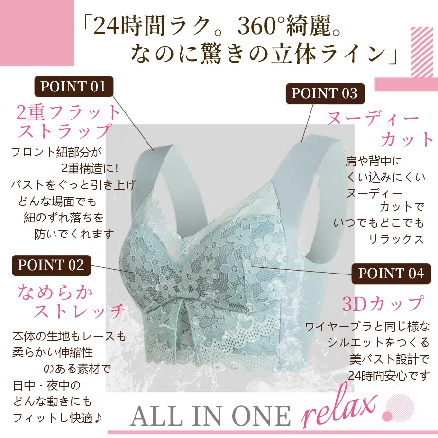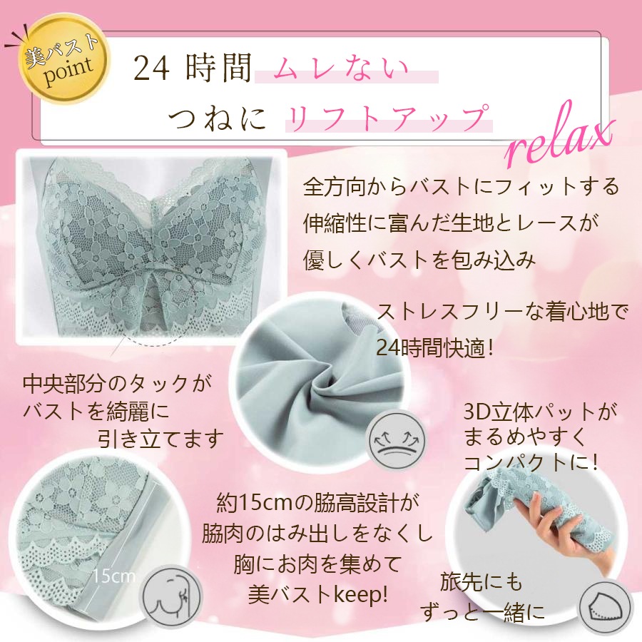 ナイトブラ ブラジャー ノンワイヤー 40代 50代 脇高 育乳 夏用 効果 大きいサイズ 脇肉補正 30代 20代 脇高 relax ブラジャー