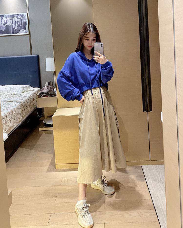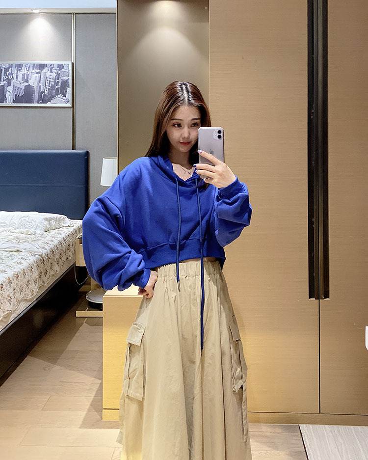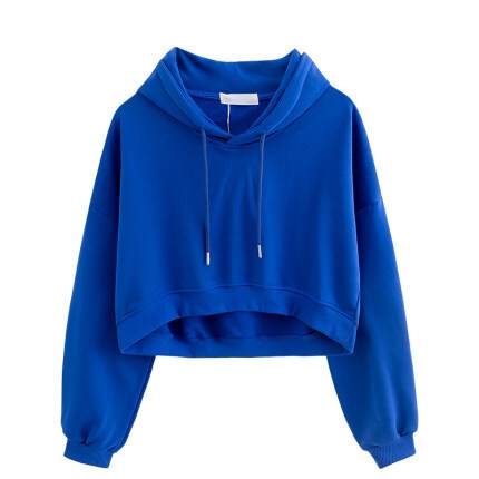 トップス レディース パーカー スウェット 個性的 ショート丈 長袖 無地 白 青 フリーサイズ 秋 トレーナー