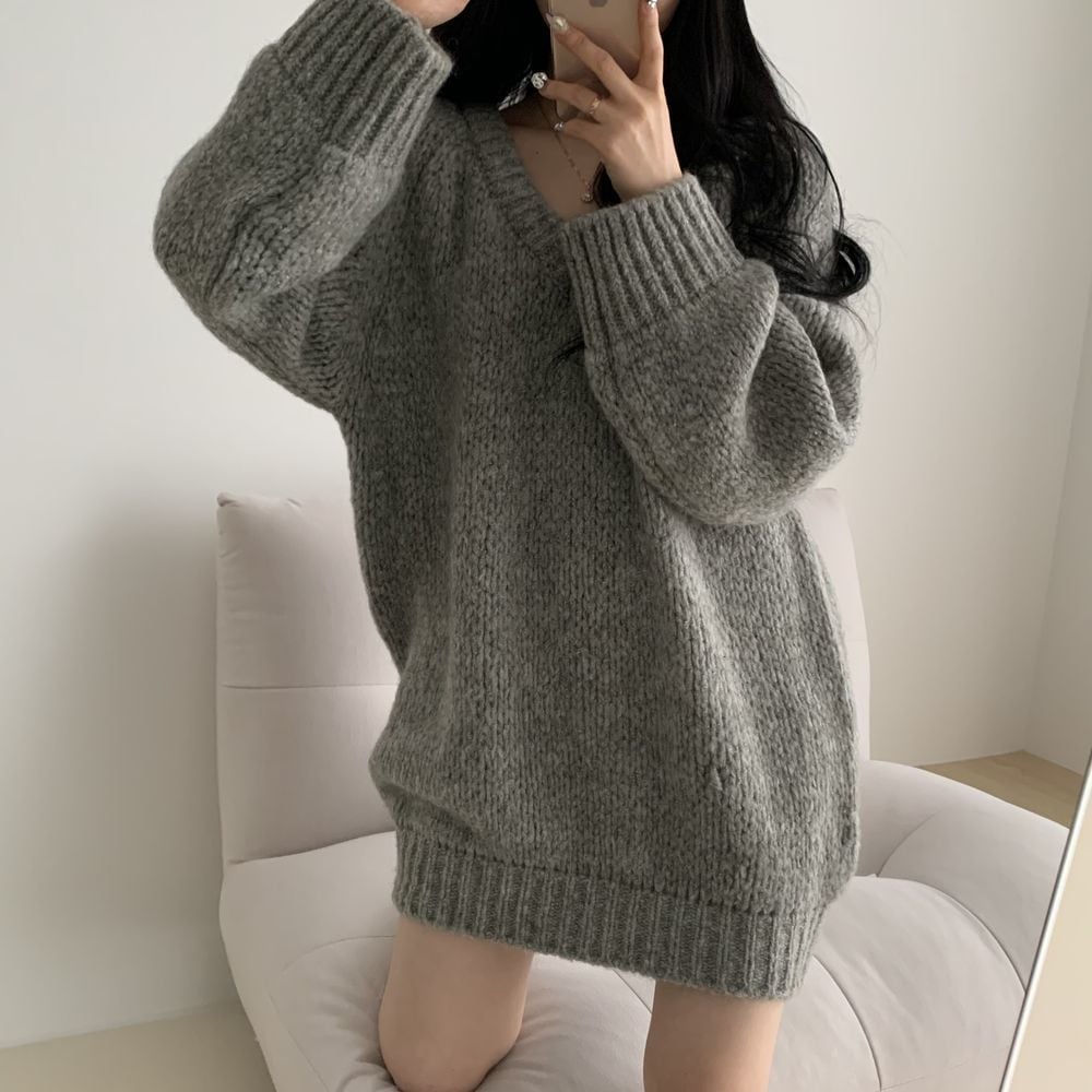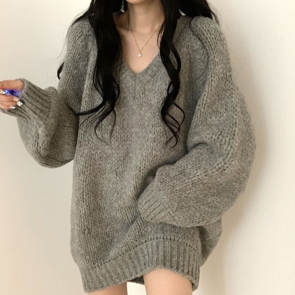 人气新作ベーシックニット ベーシックニット 韓国ファッション カシミヤタッチ ニットセーター トップス ニット インナー ベーシックニット Vネック ゆったり 百掛け スウェット セーター レディース