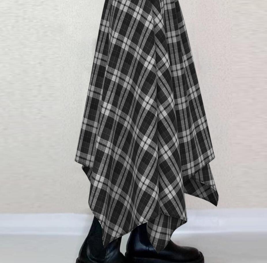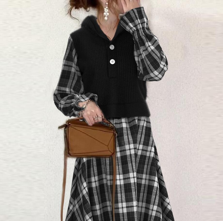 春秋薄手ロングワンピースチェックシャツワンピース通勤カジュアルファッションロングワンピース ニットワンピ