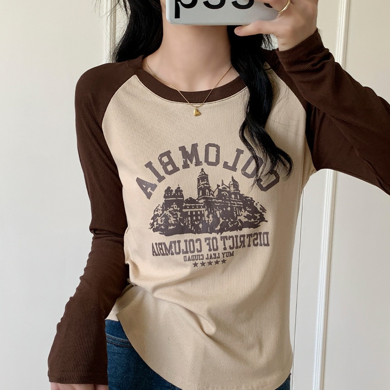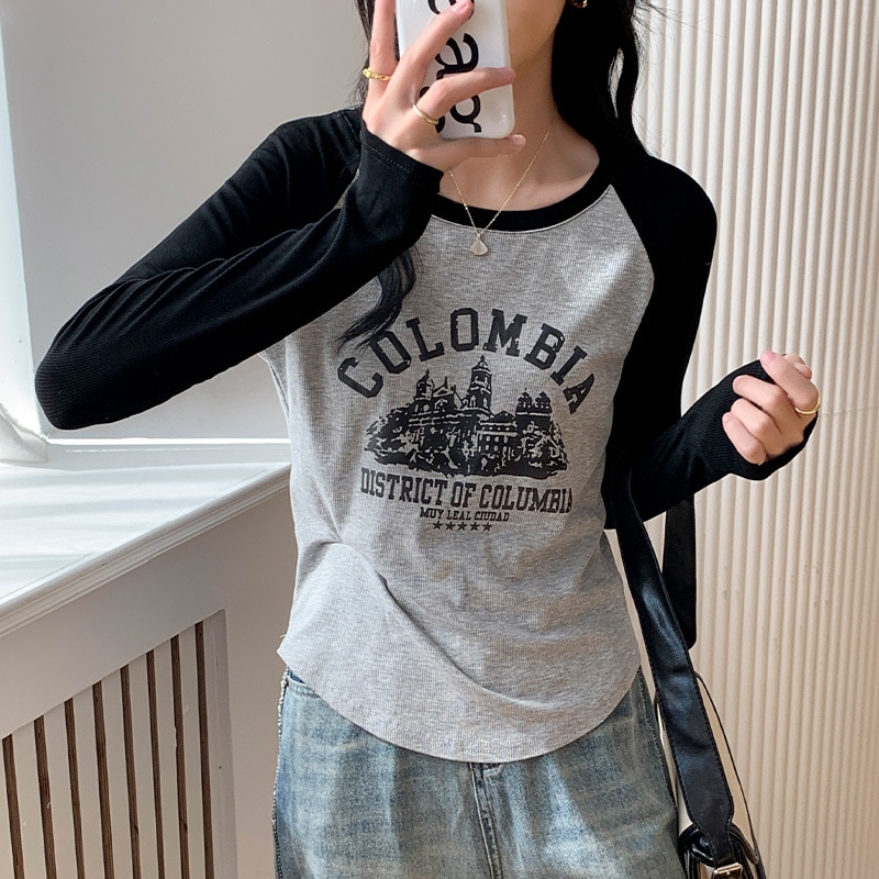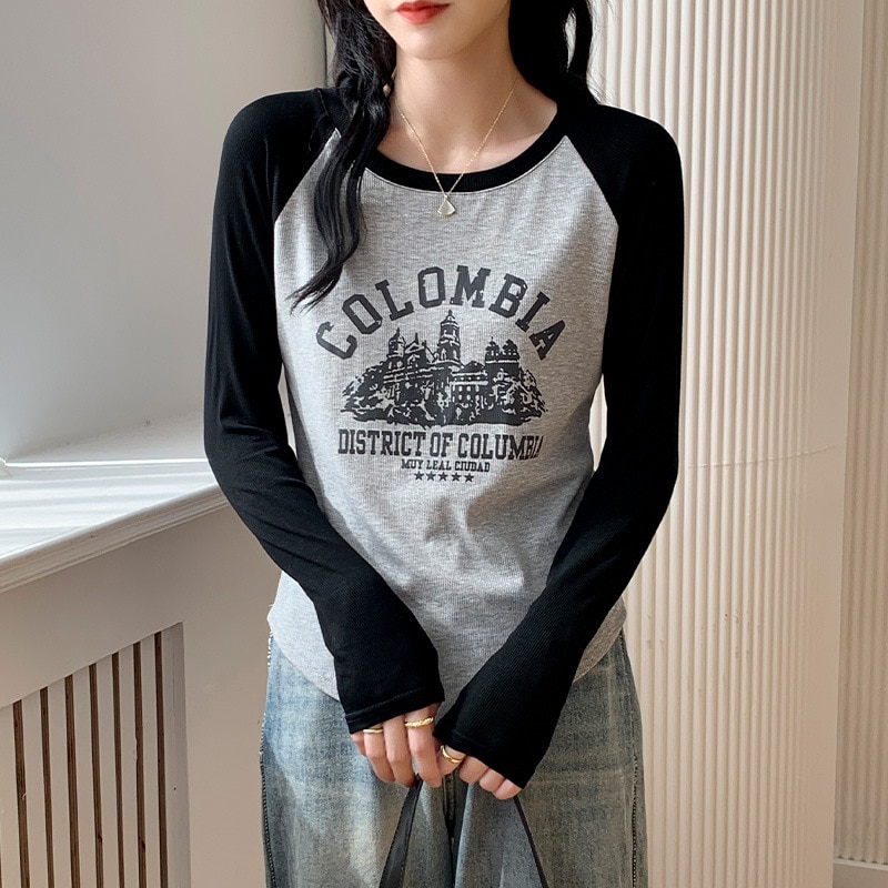 2024秋新作 ロングTシャツ 韓国 ラグランスリーブインナーボトム スウェット トップス ティーシャツ ロンT 長袖 tシャツ Tシャツ カットソー