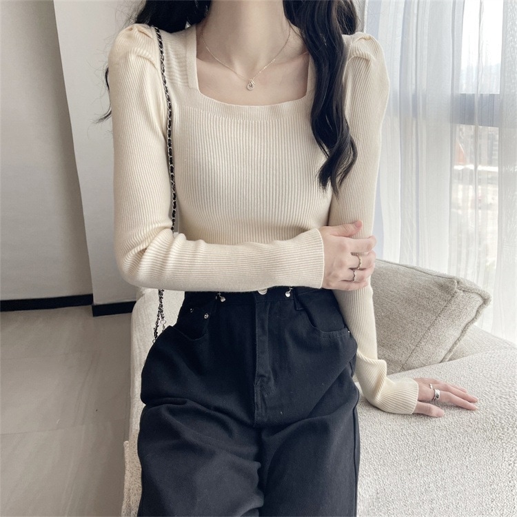 韓国ファッションニット レディース無地プルオーバー リブニット レディース カシミヤタッチベーシックニット ニット