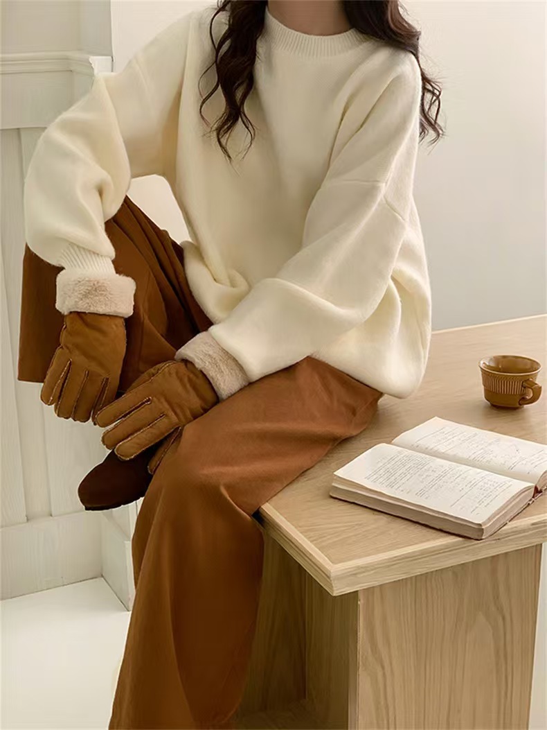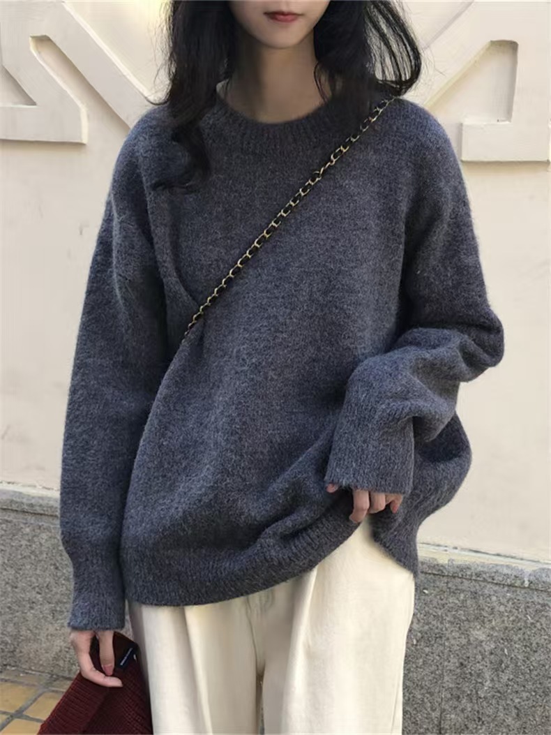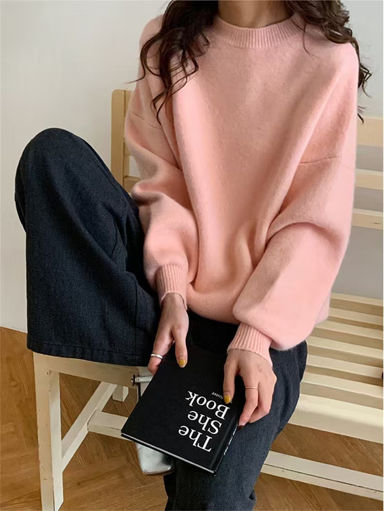 韓国人気商品 厚手 ニット服 セーター 女性 冬アウター ルーズ セーター 大サイズ カシミヤタッチ 無地 厚手シャツ 秋冬 韓国ファッション レディースファッション ベーシックニット
