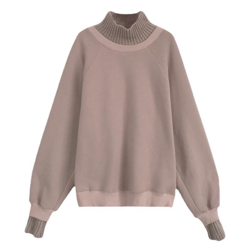 レイヤード風 ニットドッキング 裏起毛 スウェット セーター パーカー トレーナー 長袖 秋服 冬 韓国ファッション カジュアル トップス 大きいサイズ レディース