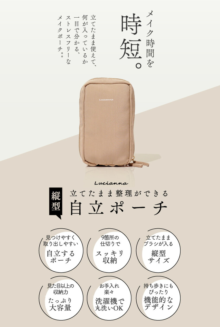 商品名:立てたまま整理ができるLucianna「縦型」自立ポーチ