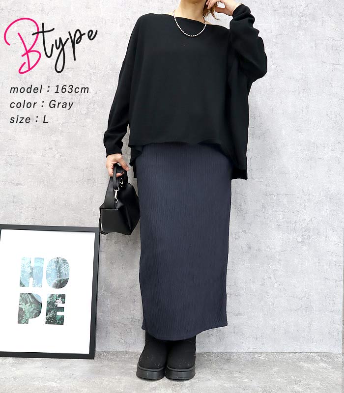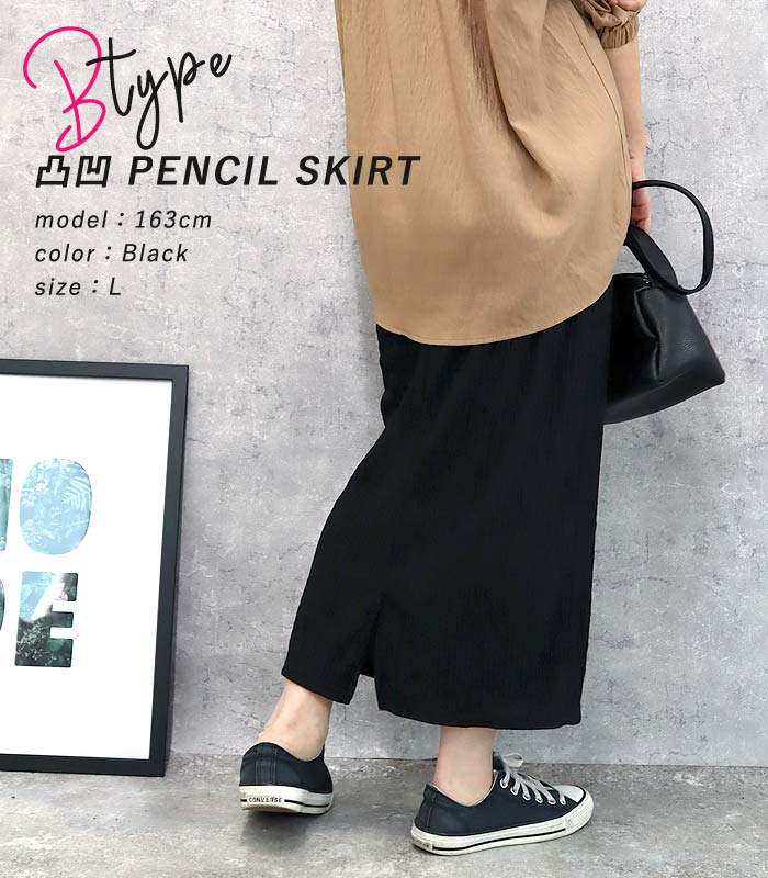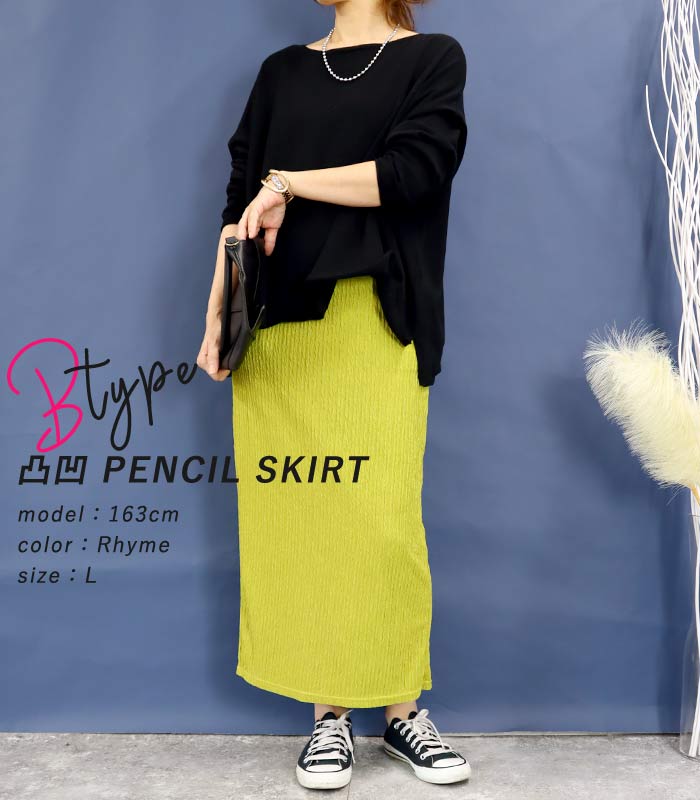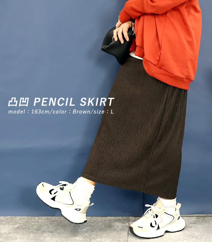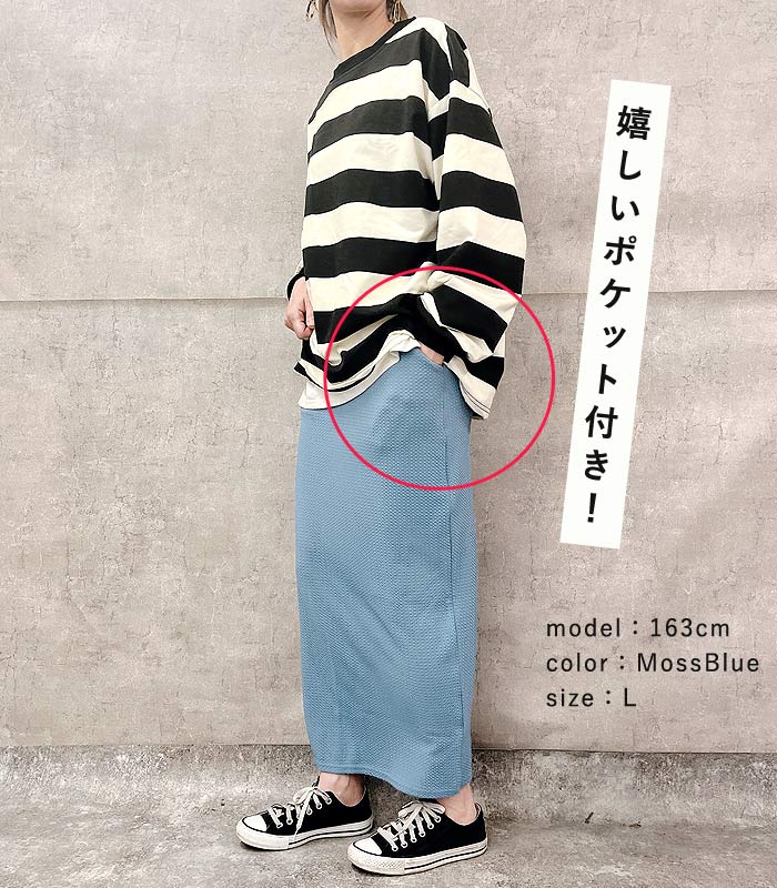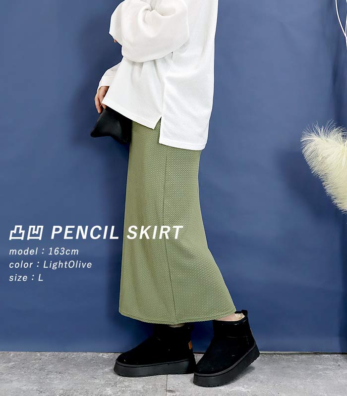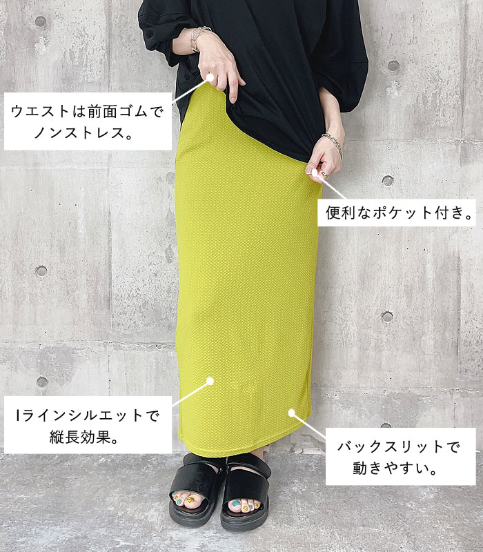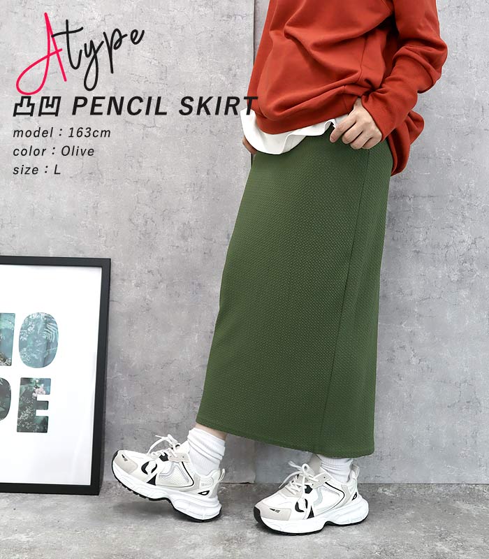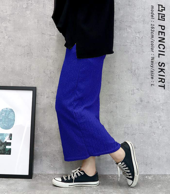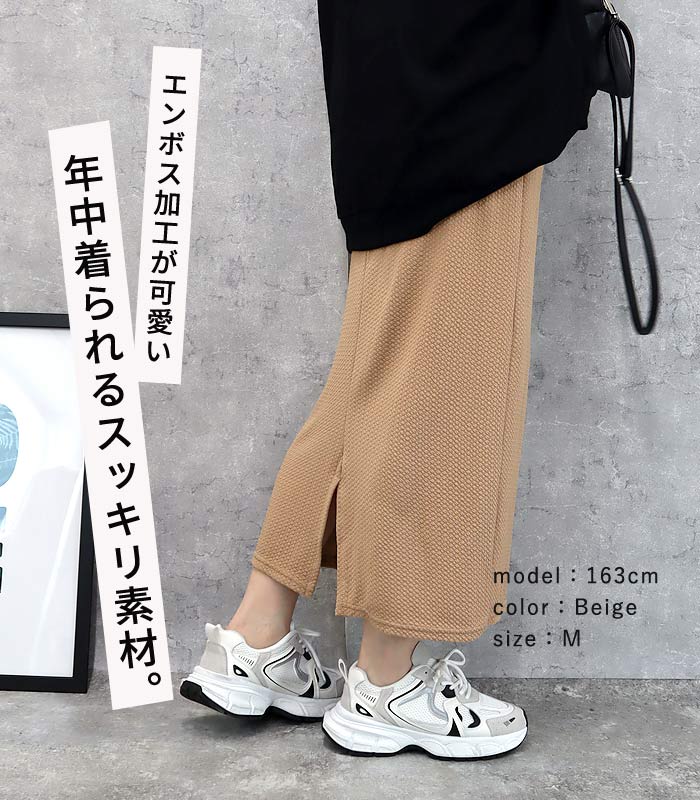 新タイプ登場 エンボス加工 ロングスカート タイトスカート ウエストゴム 体型カバー 秋 [郵2]^b405-1^ ミディアムスカート