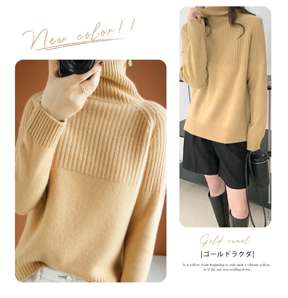 着るだけモテニット 厚手 ハイネックニット服 セーター 女性 冬アウター ルーズ セーター 大サイズ カシミヤタッチ 無地 厚手シャツ 秋冬 韓国ファッション