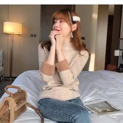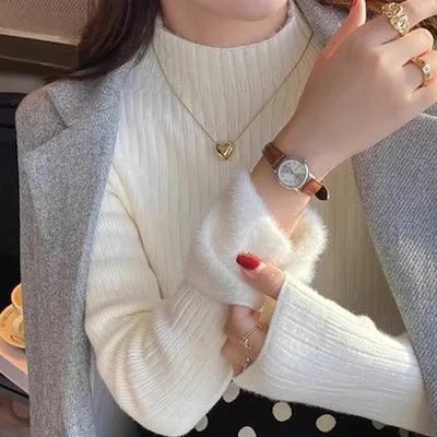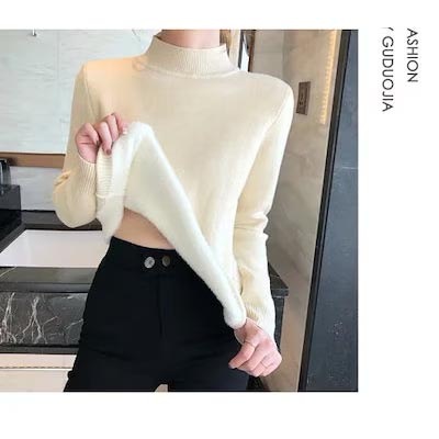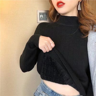 秋冬裏起毛4TYPEレディースカットソーニットセーター保温暖かい上質リブタイトシルエットストレッチカットソートップス