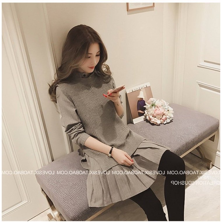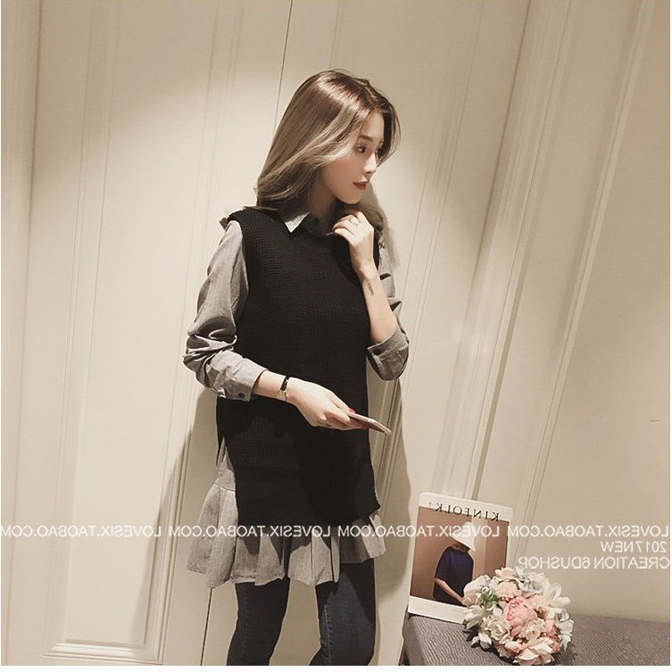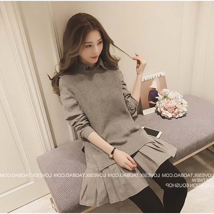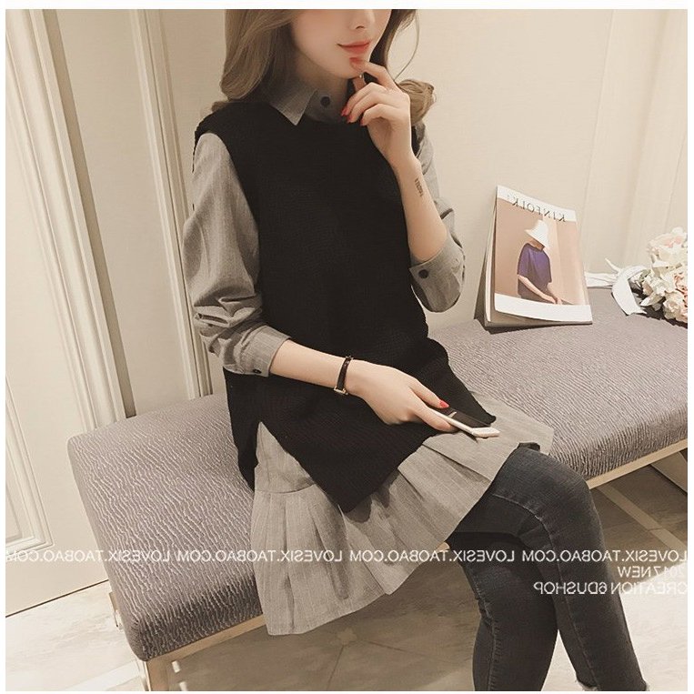 ワンピース レディース きれいめ 秋冬 膝丈ワンピース 長袖 シャツワンピ ニットベスト セットアップ 大きいサイズ オシャレ 大人可愛い 新作