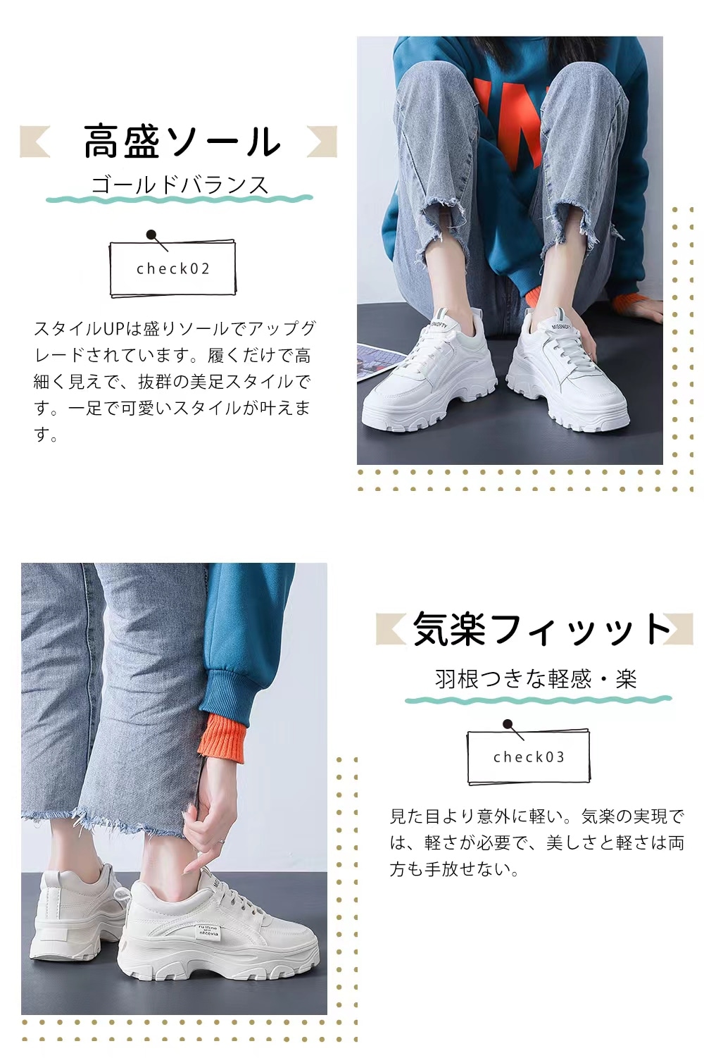 厚底 ダットスニーカー 美脚 スニーカー トレンド カジュアルシューズ 靴 レディース 通学 通勤 白 韓国靴 シューズ トレンド 運動靴ダッドスニーカー