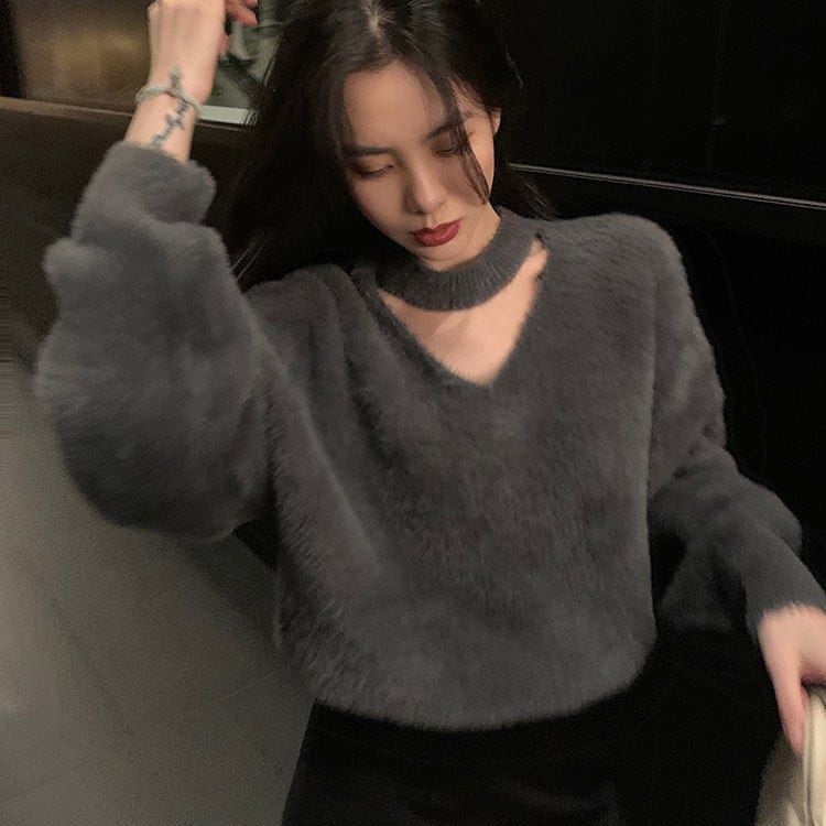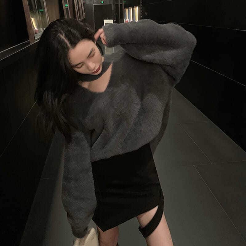 新しい やさしい セクシー レディース 怠惰な風 セーター レッド ミンク ウール ゆったり ニット1 ニット
