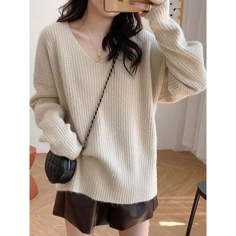 人気なリプニット ゆったり 怠惰な風 セーター レディース 重ね着ニットトップス Vネック 着やせ 韓国ファッション 長袖トップス カシミヤタッチ