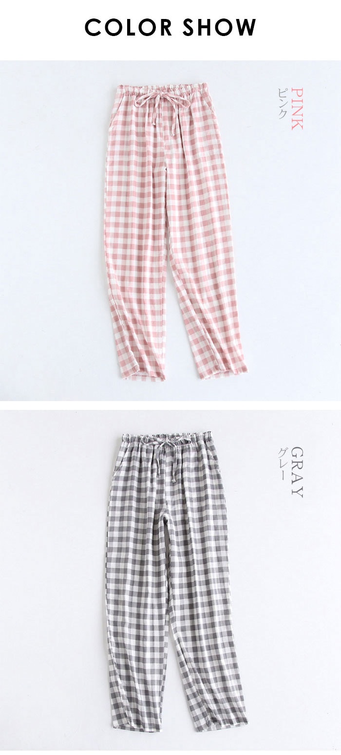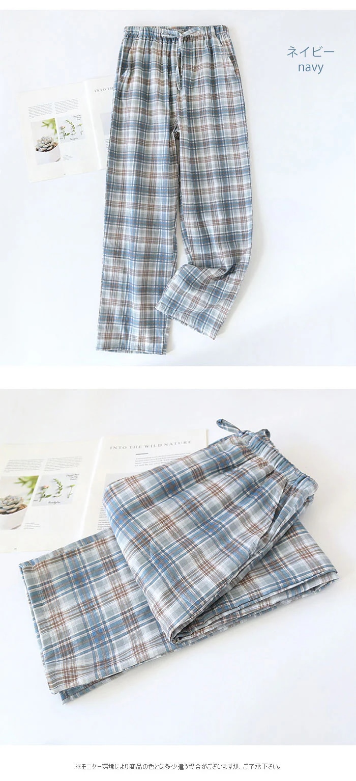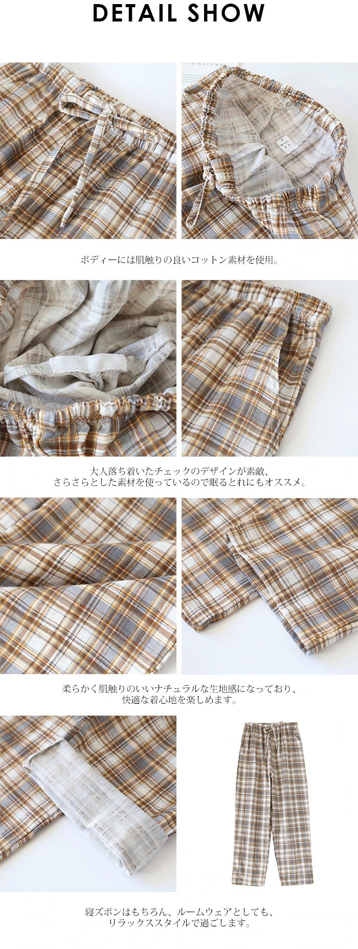 パジャマ パンツ 部屋着 ガーゼ素材 ズボン チェック 男女兼用 イージーパンツ ルームパンツ 綿100 薄手 スウェットパンツ ルームウェア 長パンツ ロングパンツ入院 ペアルック