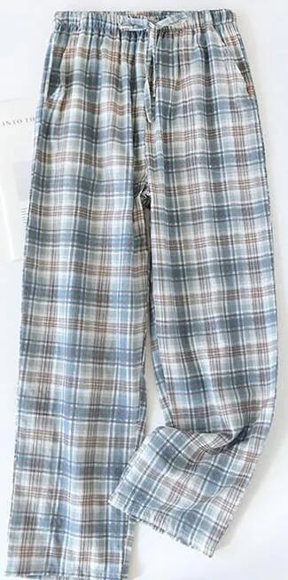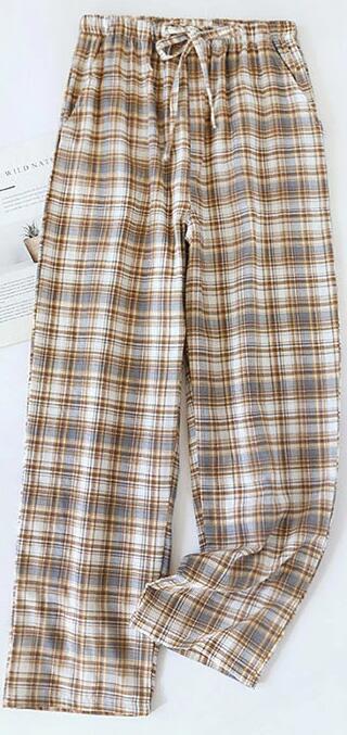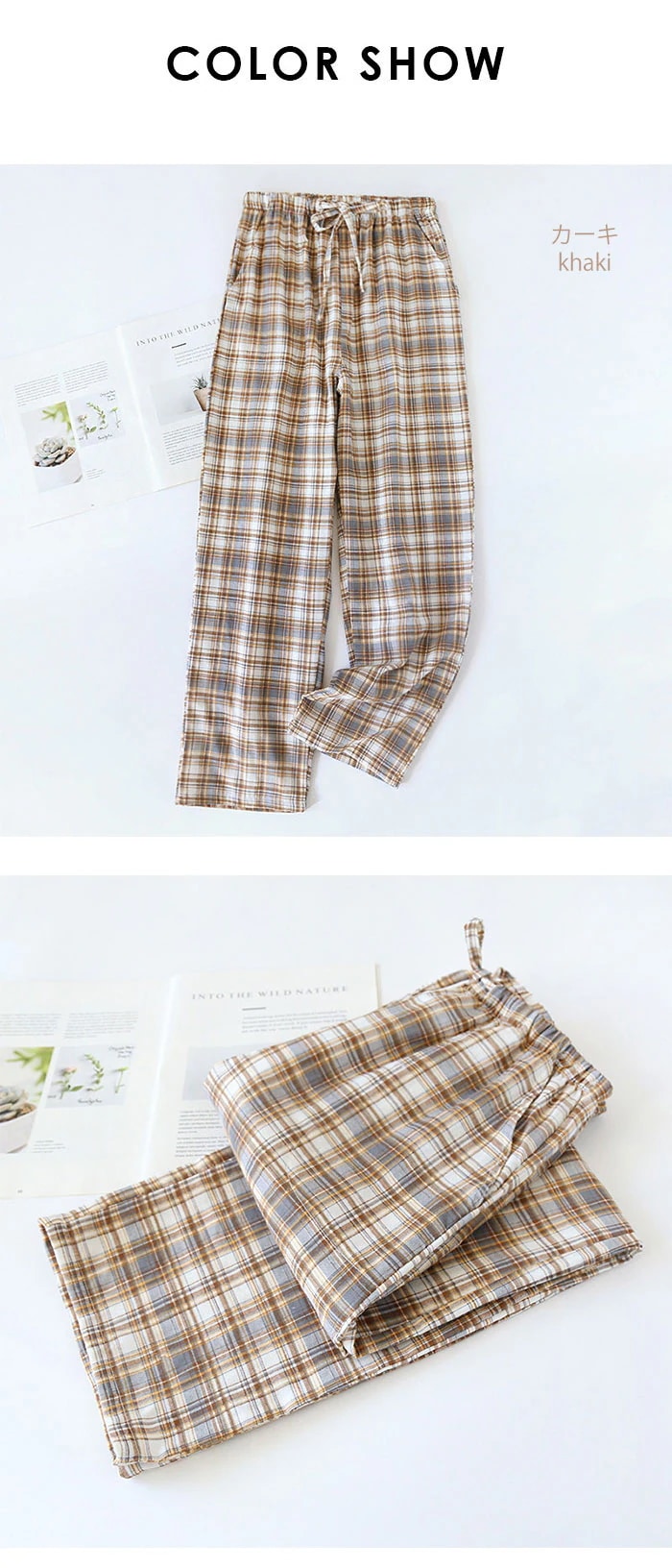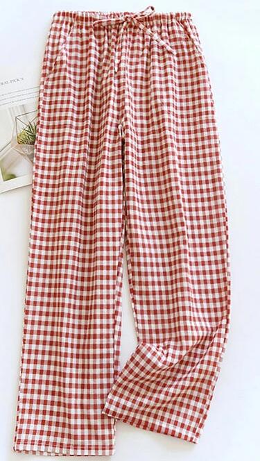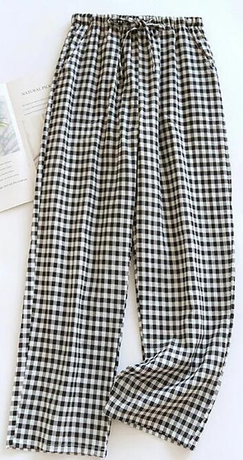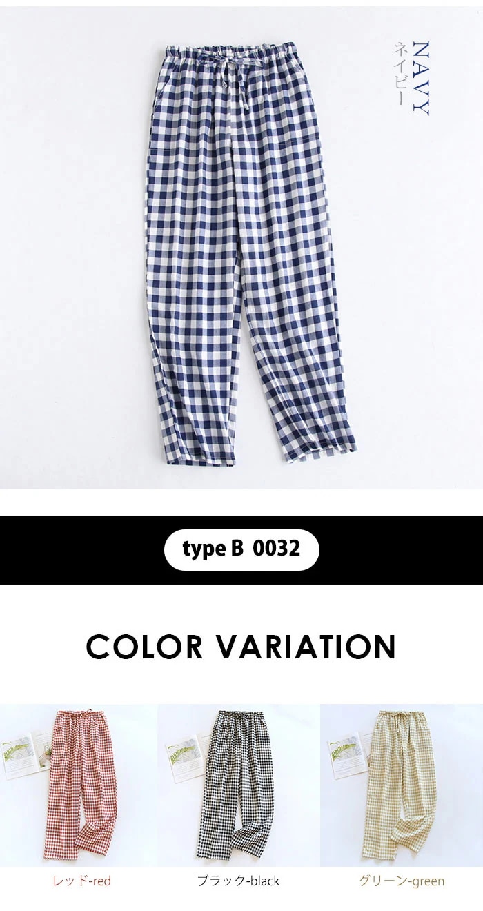パジャマ パンツ 部屋着 ガーゼ素材 ズボン チェック 男女兼用 イージーパンツ ルームパンツ 綿100 薄手 スウェットパンツ ルームウェア 長パンツ ロングパンツ入院 ペアルック