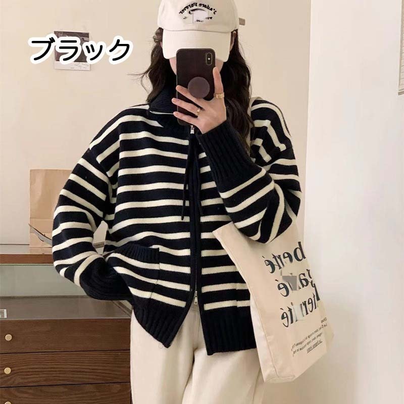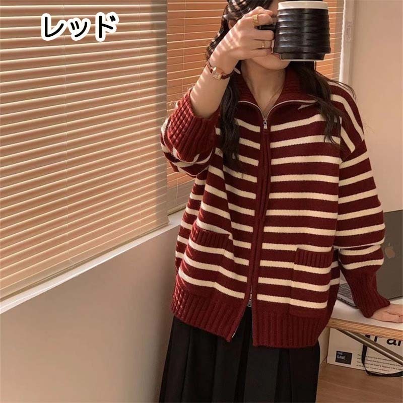 ダークエンジェル トップス ニット セーター レディース ボーダー ハーフジップ セーラーカラー ジッパー ハイネック ボーダー柄セーラーカラーニット ダークエンジェル