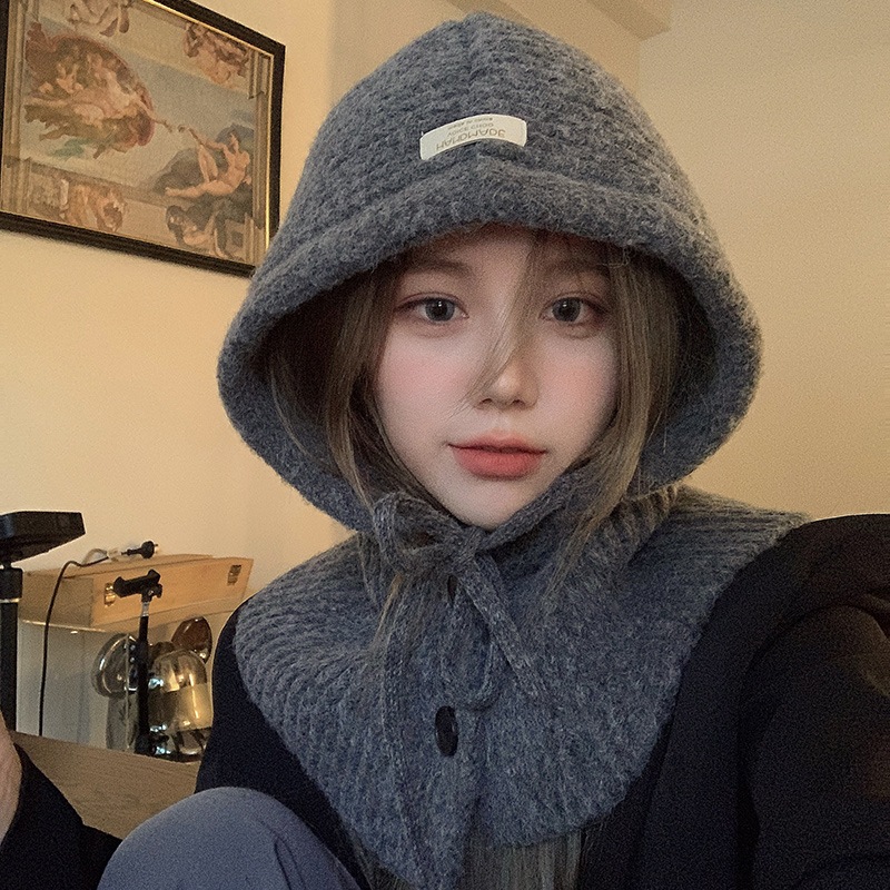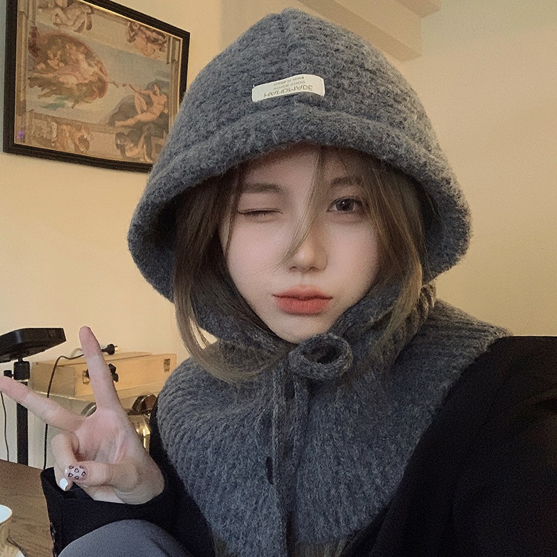 大きい頭の周りのバラクのラフの帽子の女性の秋冬の新型のニットの帽子のマフラーの一体の保温の耳の毛糸の帽子 ニット帽