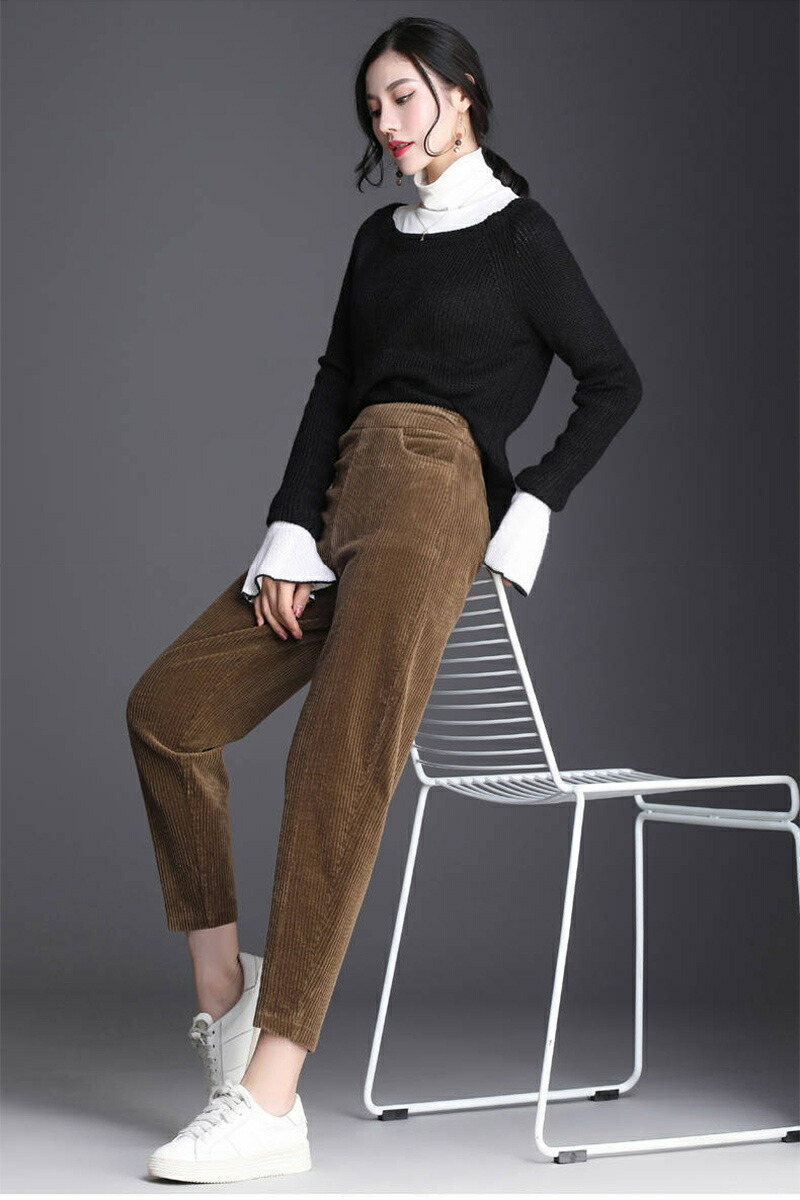 裏起毛 ロングパンツ パンツ レディース 冬 テーパードパンツ ハロンパンツ ゆったり ボトムス 無地 秋冬 コーデュロイ ウエストゴム 裏ボア 暖かい ロングパンツ 体型カバー ボア 厚手 ルームウ