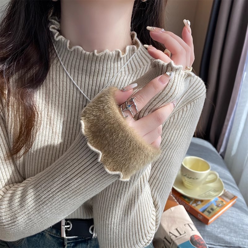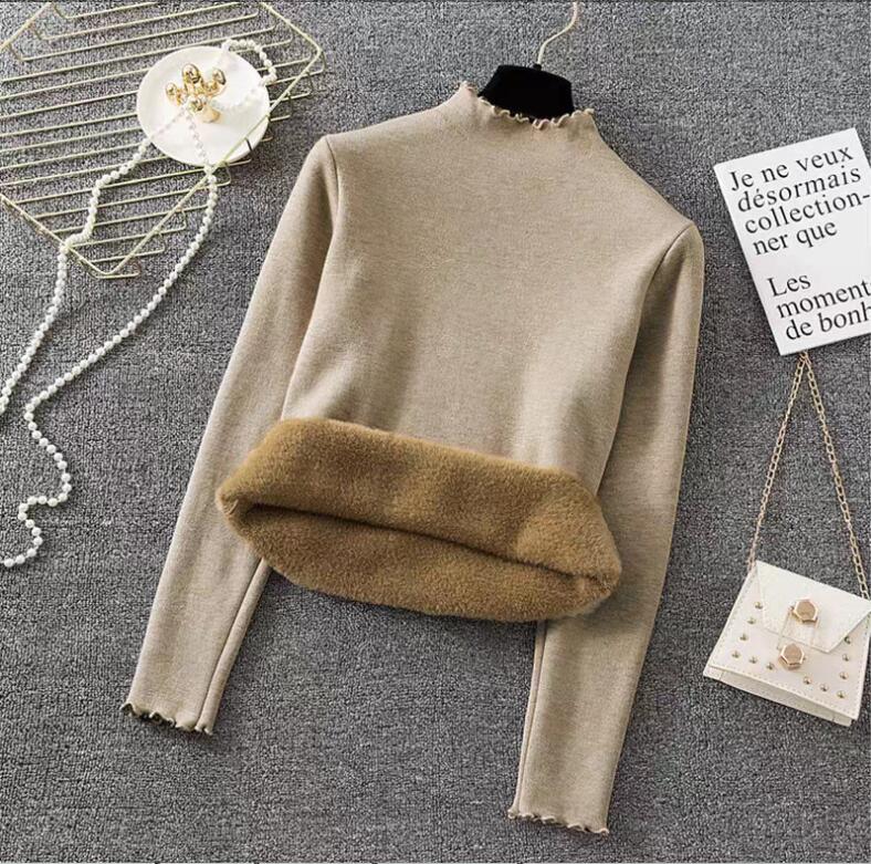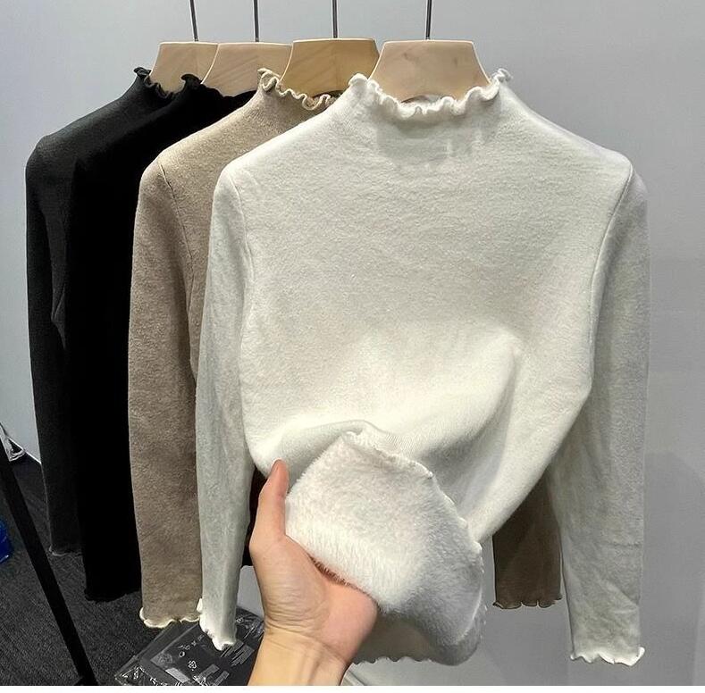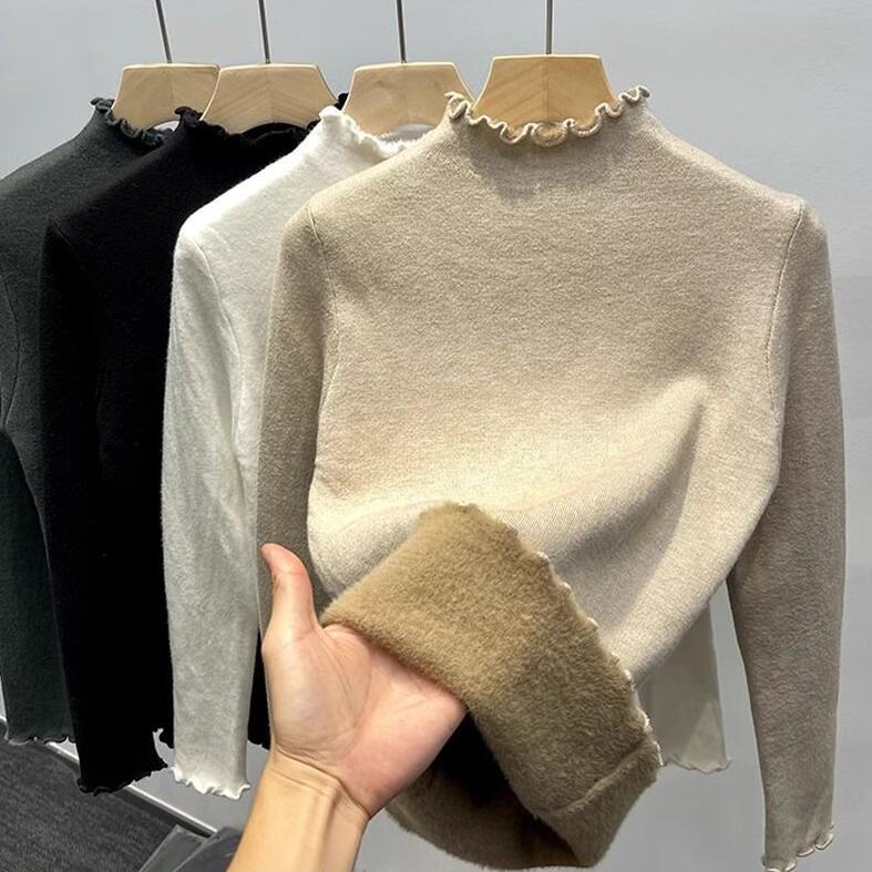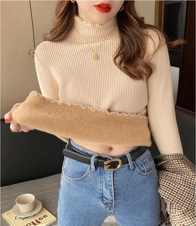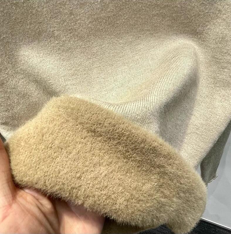 高品質 韓国ファッション ニット 極暖裏起毛 保温 純色 無地 長袖 タートルネック ニット カーディガン