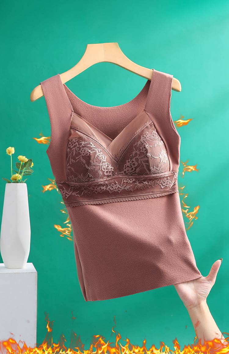 裏起毛 タンクトップ カップ付き ノンワイヤー あったかインナー レディース インナー ヒートインナー 下着 肌着 保温 防寒 冬 軽い 暖かい 耐久 快適 無地 レース おしゃれ 大きいサイズ L