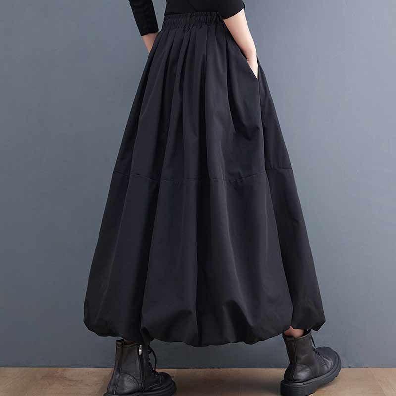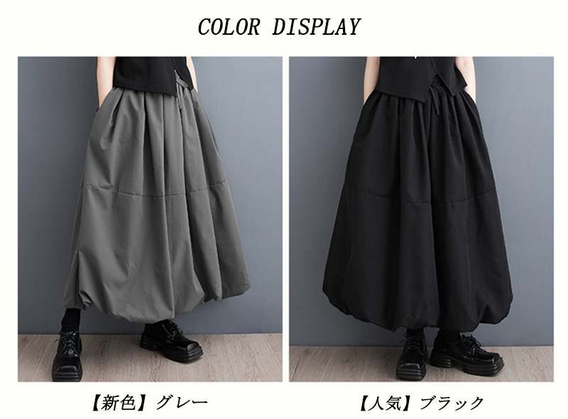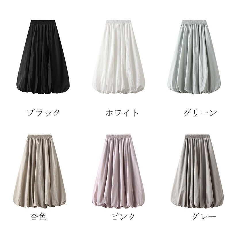 バルーンスカート ロング スカート レディース aラインスカート ハイウエスト ロングスカート 大きいサイズ ボトムス ウエストゴム スカート ロング マキシ丈 バルーン フレアスカート 黒 フレア