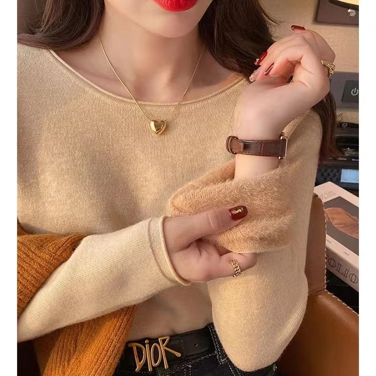 人気なリプニット 裹起毛 暖かいニットインナー 無地 快適百掛け セーター レディース 韓国ファッション ベーシックニットトップス カシミヤタッチ ニットセーター 裹起毛アンダーウェア