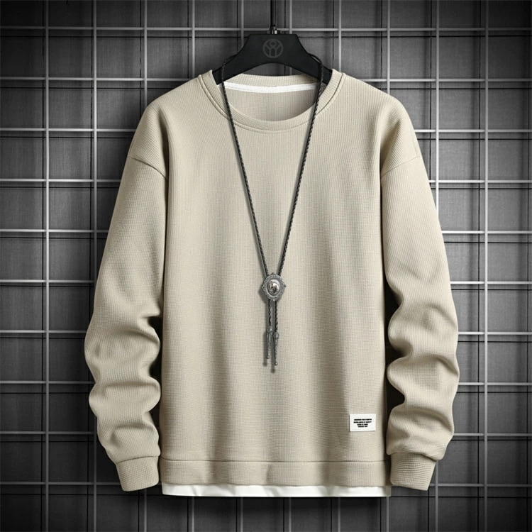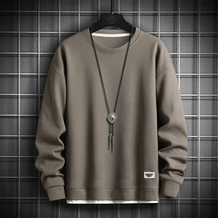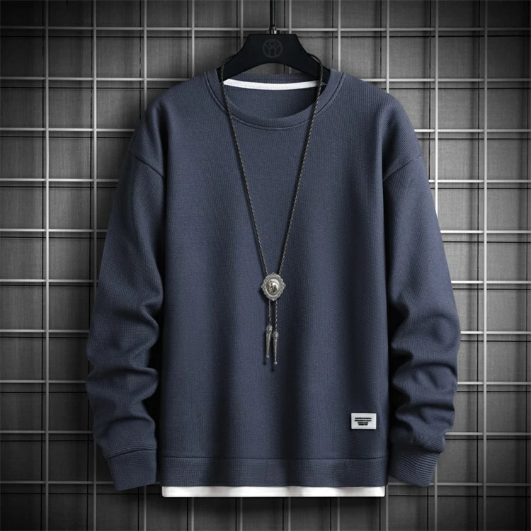 ワッフル ロンT メンズ プルオーバー 長袖Tシャツ 裏起毛 無地 tシャツ カジュアル クルーネック 重ね着風 Tシャツ ロングTシャツ ティーシャツ おしゃれ