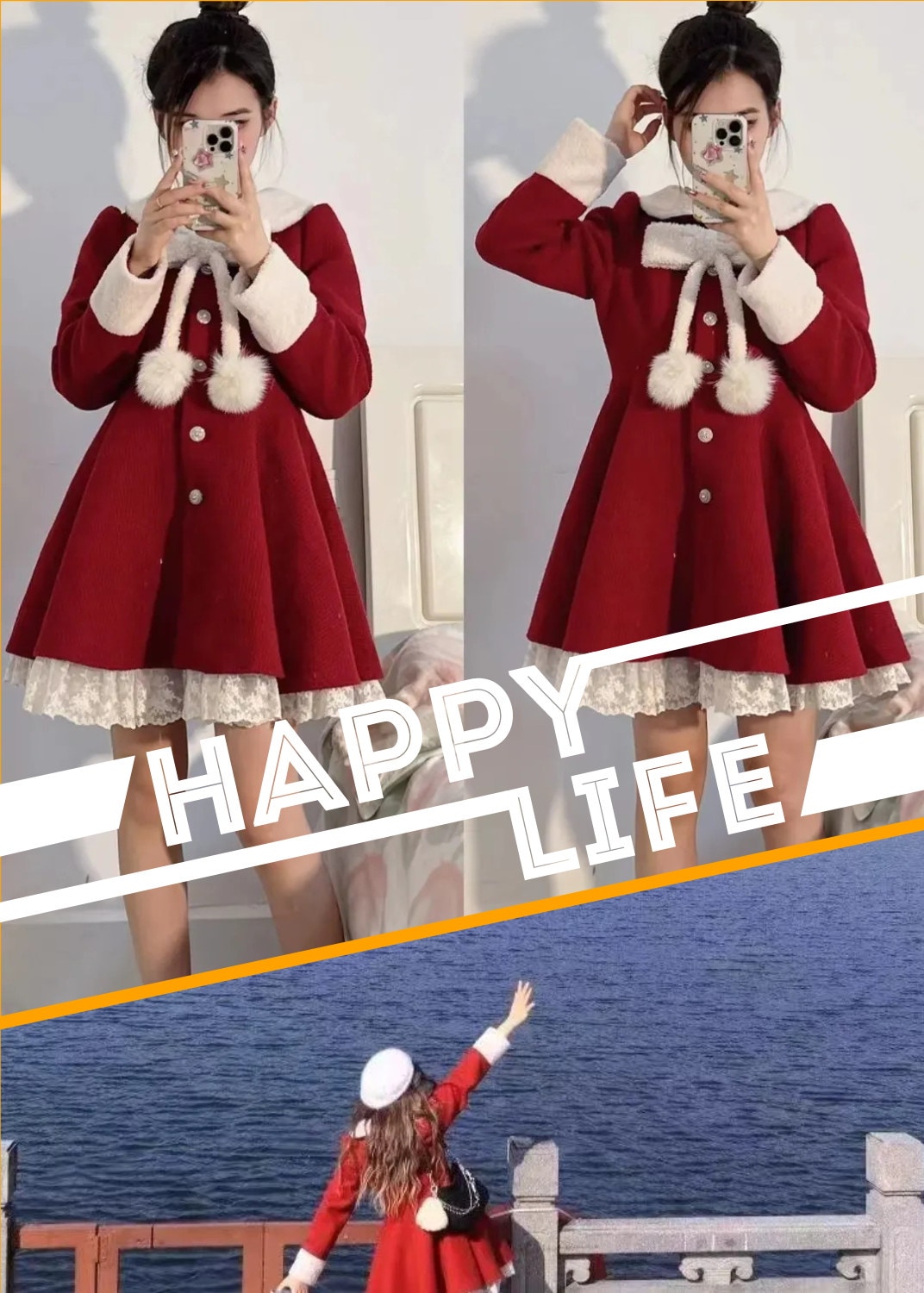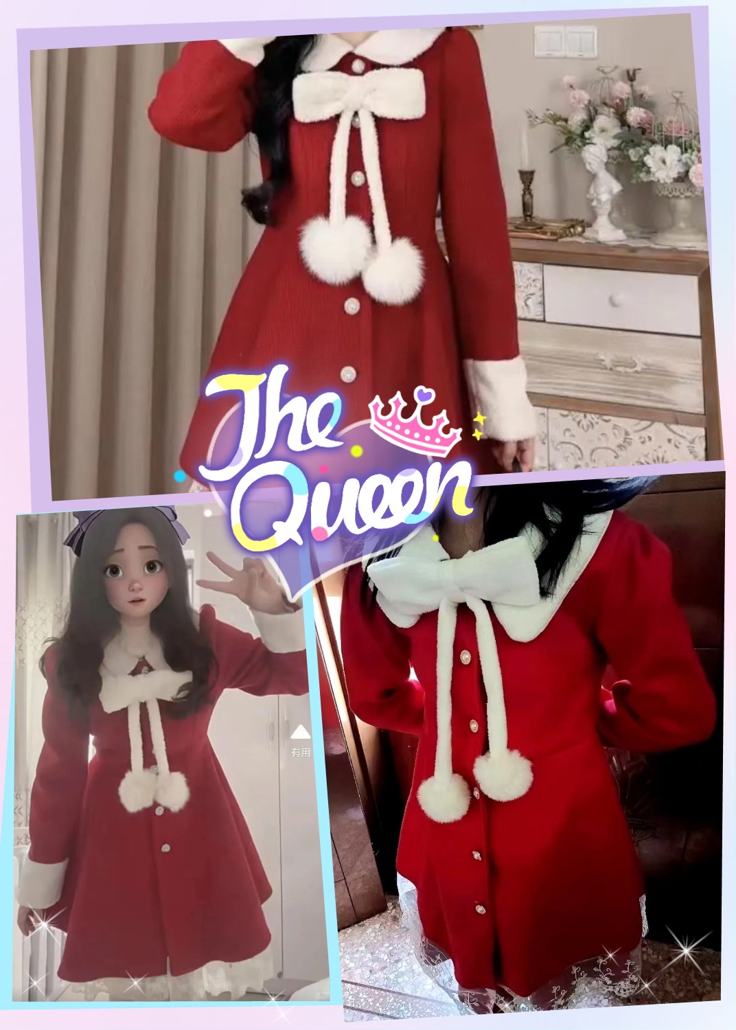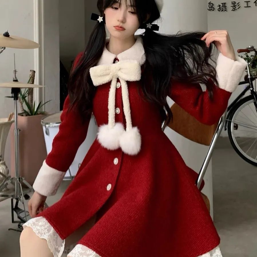 クリスマスワンピース 蝶結び レース ショートワンピース セットアップ レディース 少女 高校生 ワンピース サンタクロース クリスマス コスプレ サンタコスプレ サンタコス メガ割 2