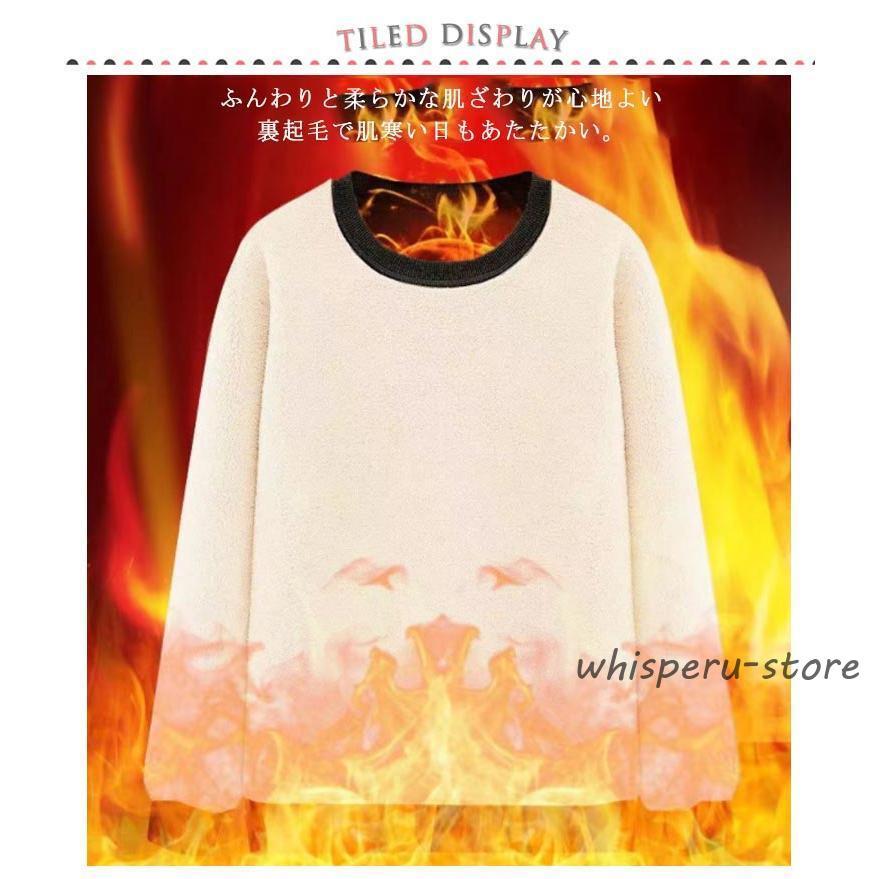 トレーナー 裏起毛 防寒 暖かい 長袖 体型カバー 裏ボア カジュアル 冬 プルオーバー レディース 裏起毛トレーナー トレーナー 丸首 あったか ト